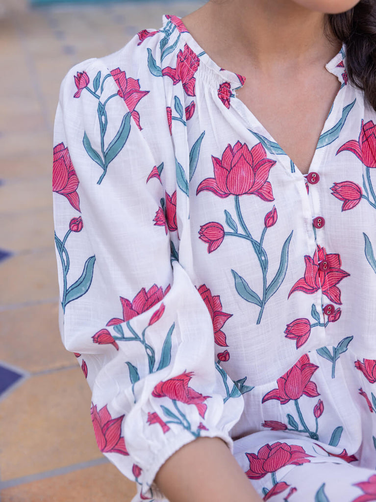 Set of 2 - Lotus Hand Block Printed Co-ord Set