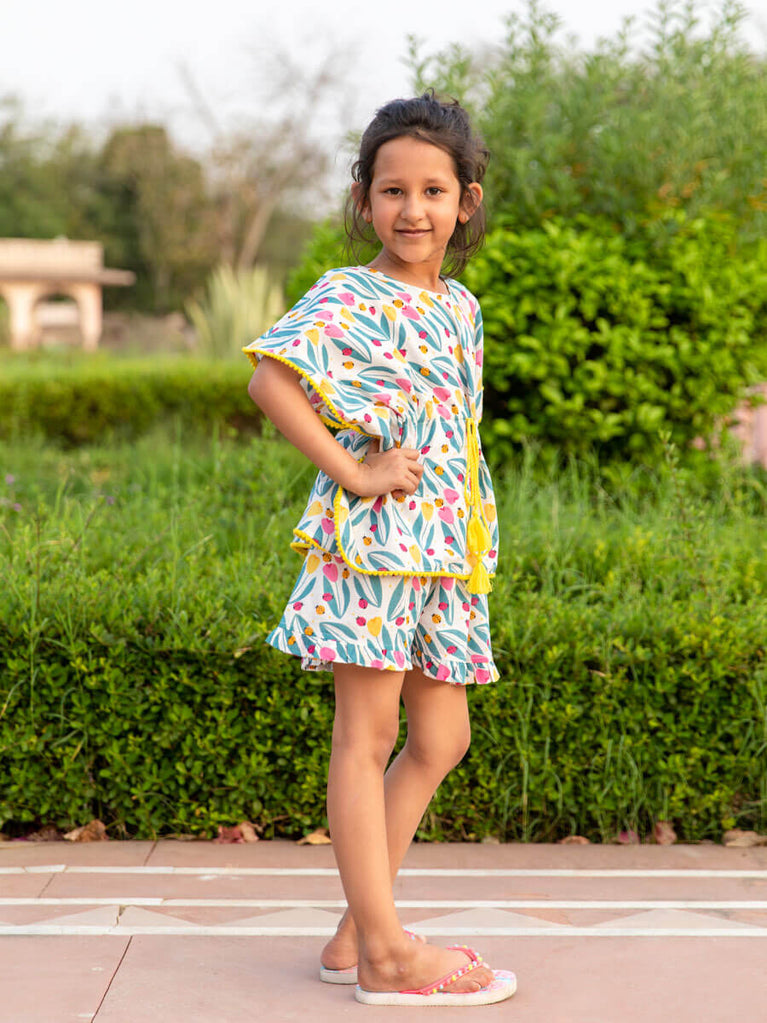 Set of 2 - Vibgyor Organic Cotton Kaftan Top and Shorts