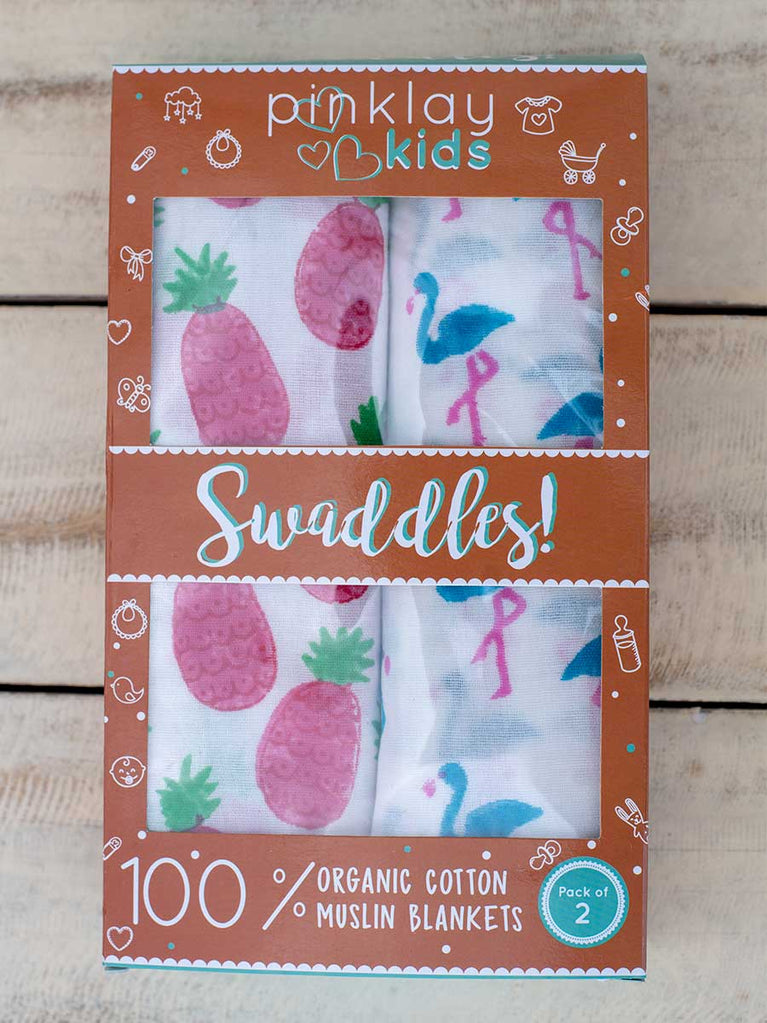 Set of 2 -Pineapple Joy Organic Cotton Muslin Swaddles