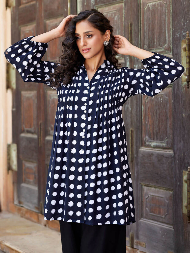 Shiddat Black Hand Printed Pintuck Shirt Kurta