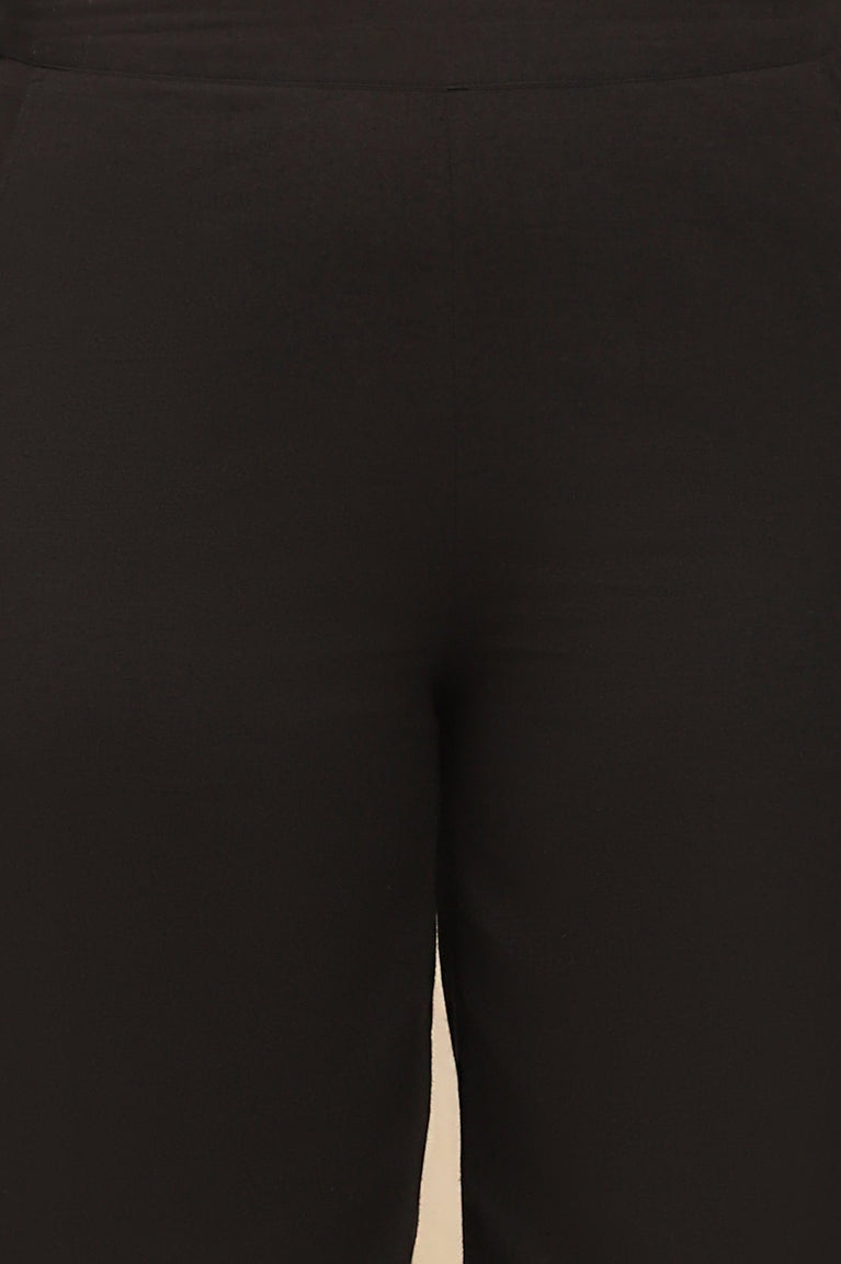 Black Printed Cotton Flax Straight Kurta and Pants Set