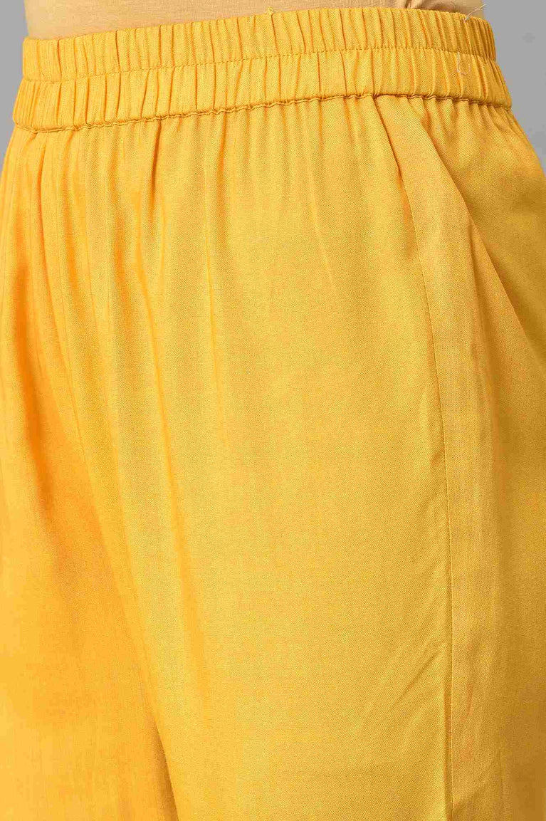 Micro-geometric precision weaving defines your traditional style with this flared palazzo. Featuring a geometric print and partially elasticated waistband, it offers high comfort with its premium woven cotton fabric. Imagine pairing this ankle-length fashion bottom with a kurta and sandals for a trendy look. A must-have in your wardrobe for casual outings.