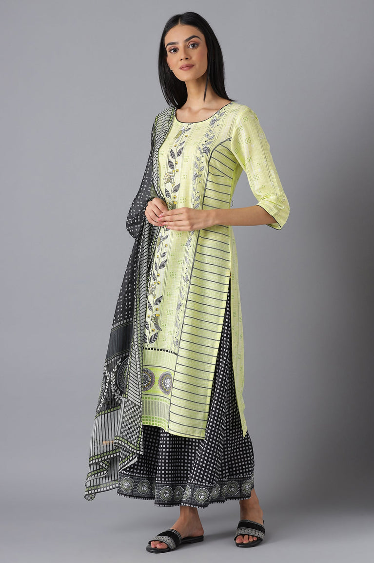 Head Out In Style For A Festive Night Or A Celebration At Friend's Place, You'Re Going To Ace In This Ethnic Look kurta Set. Crafted In Rayon, This Zari And Thread Embroidered kurta Also Features Sequin Detailing. Coordinated With Burnt Ochre Floral Print Palazzos Having Elasticated Waistband For A Comfortable Look.