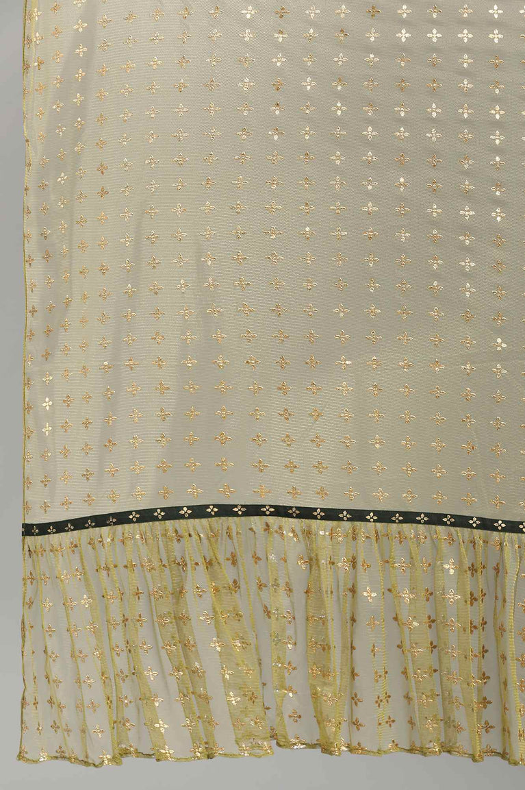 Light green cotton voile shinny dupatta with golden tape border.