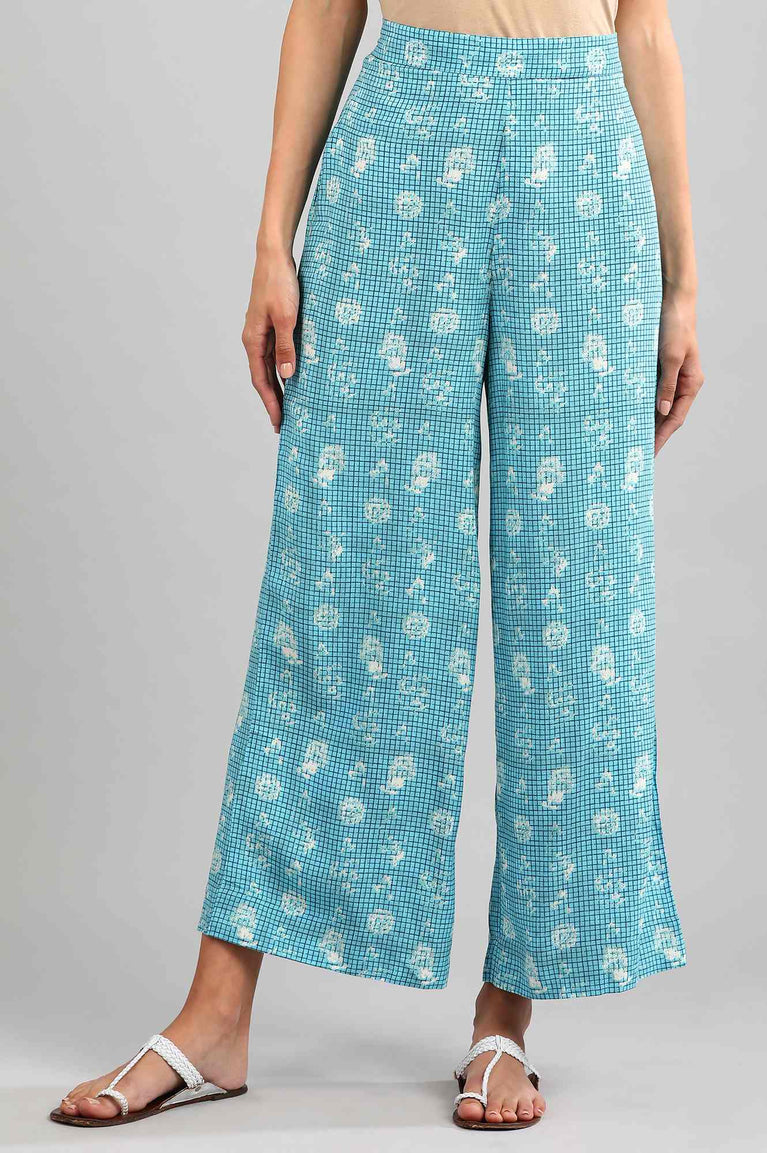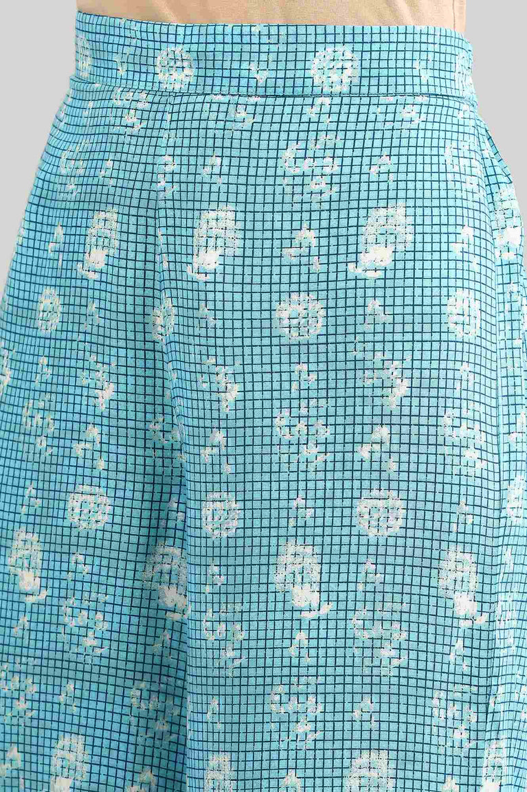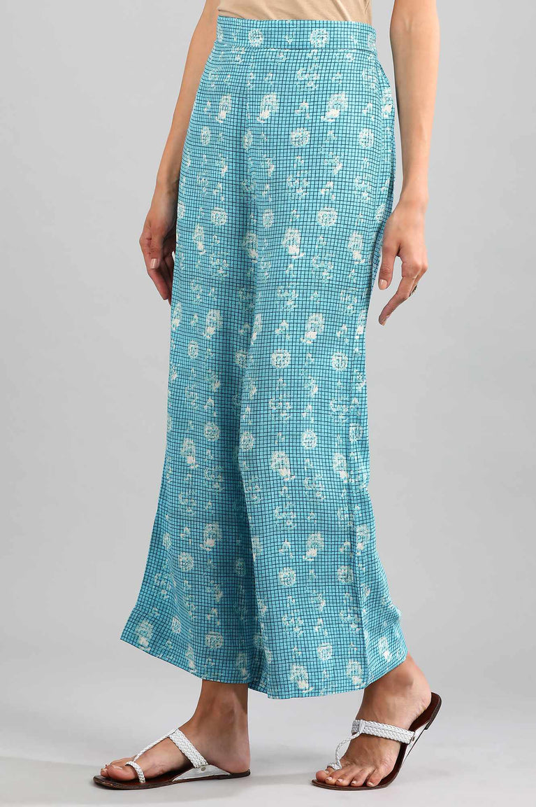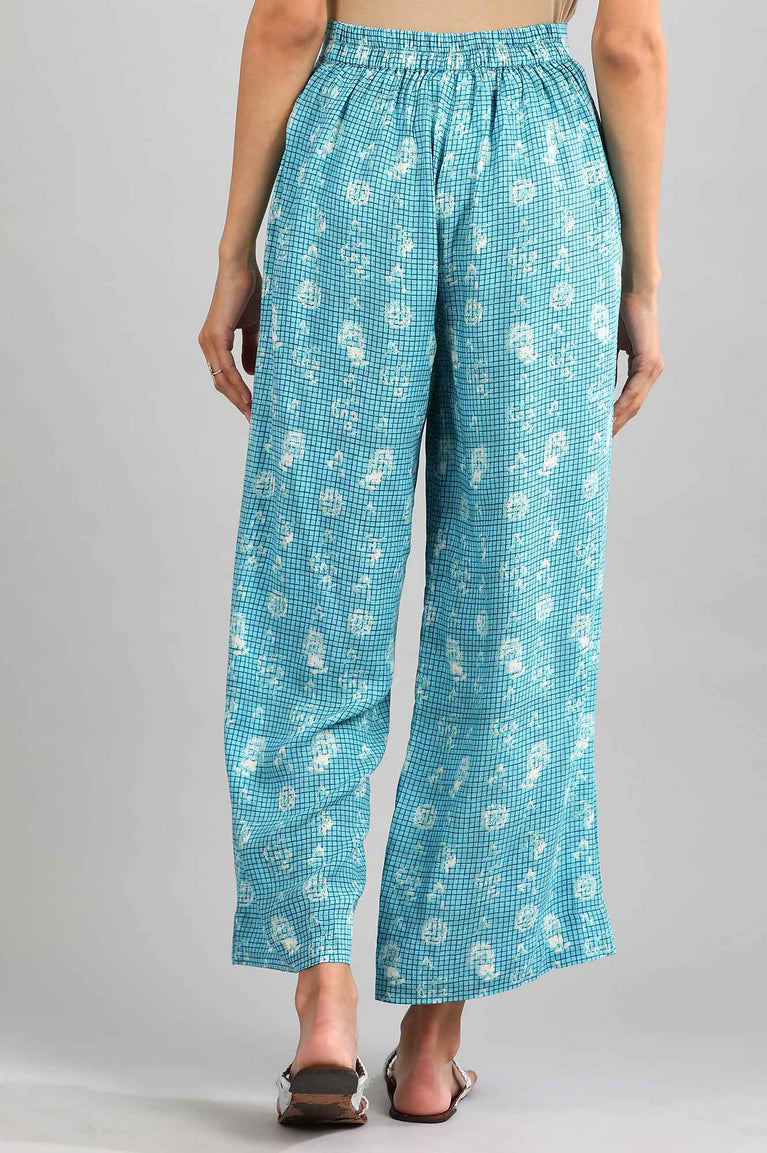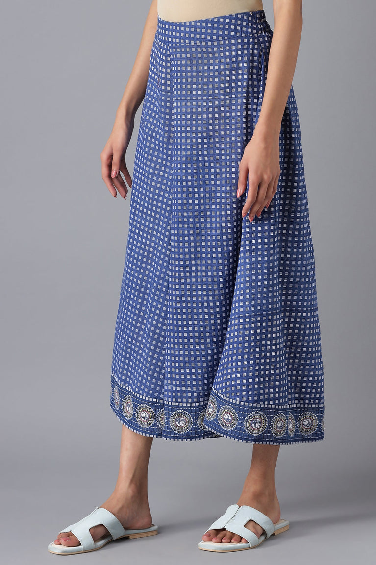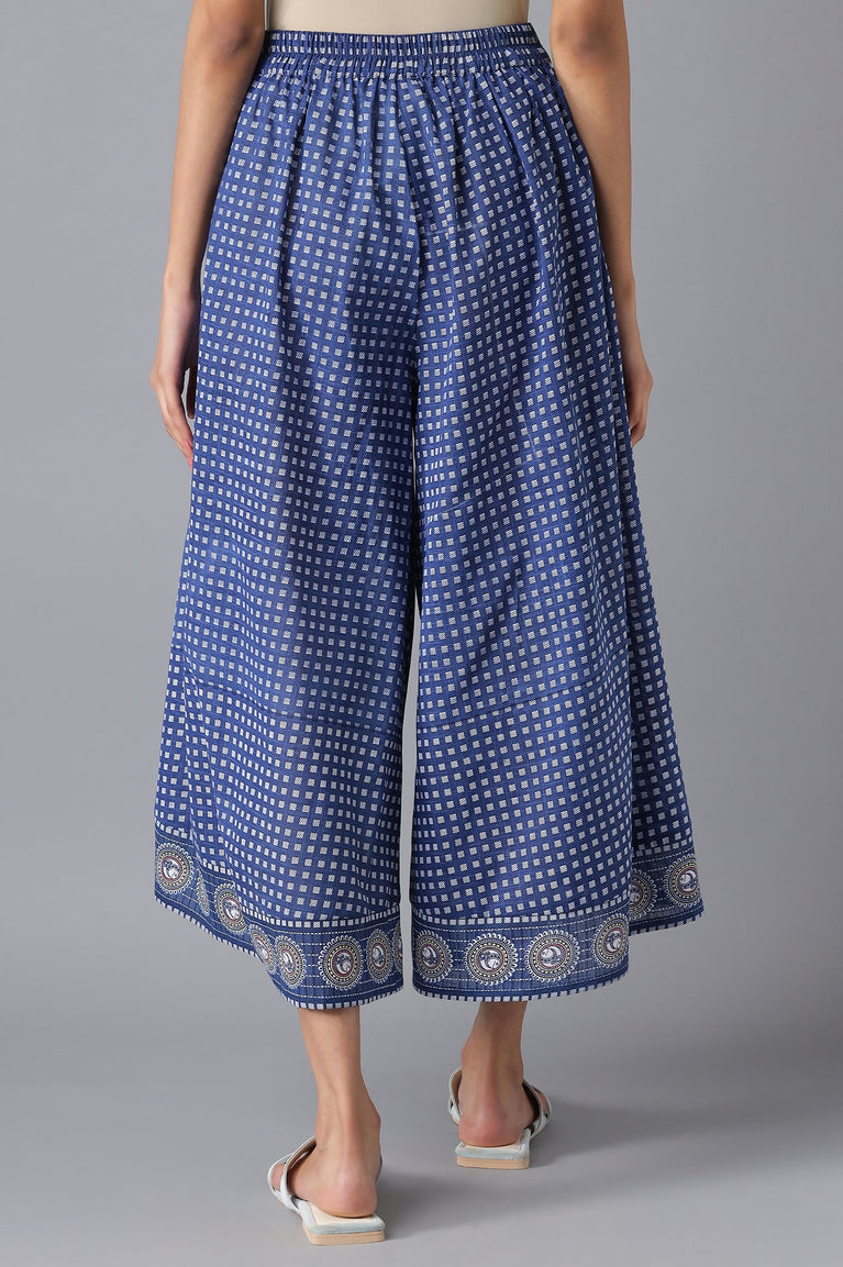 Blue Checkered Flared Cotton Palazzo With Elasticated Waist