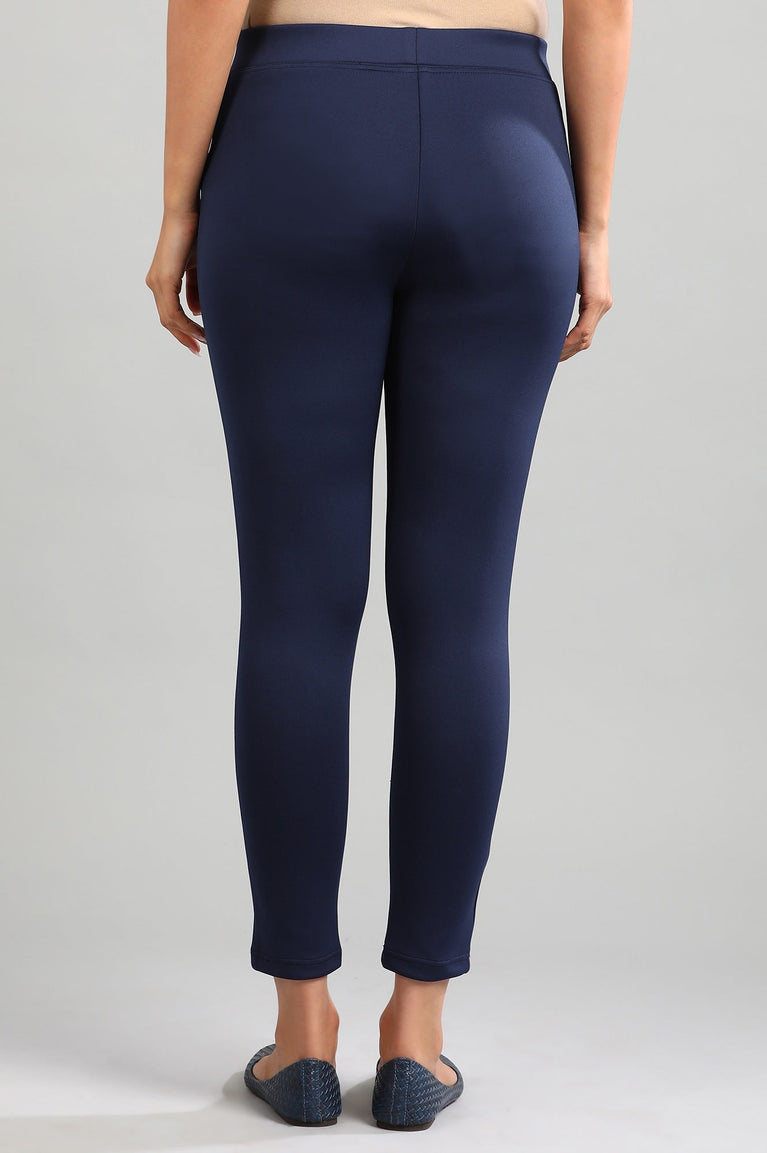 Blue Solid Skinny Fit Tights With Elasticated Waist