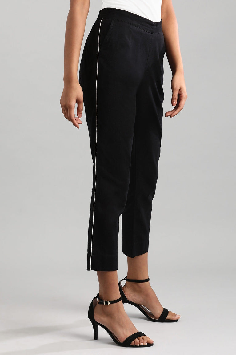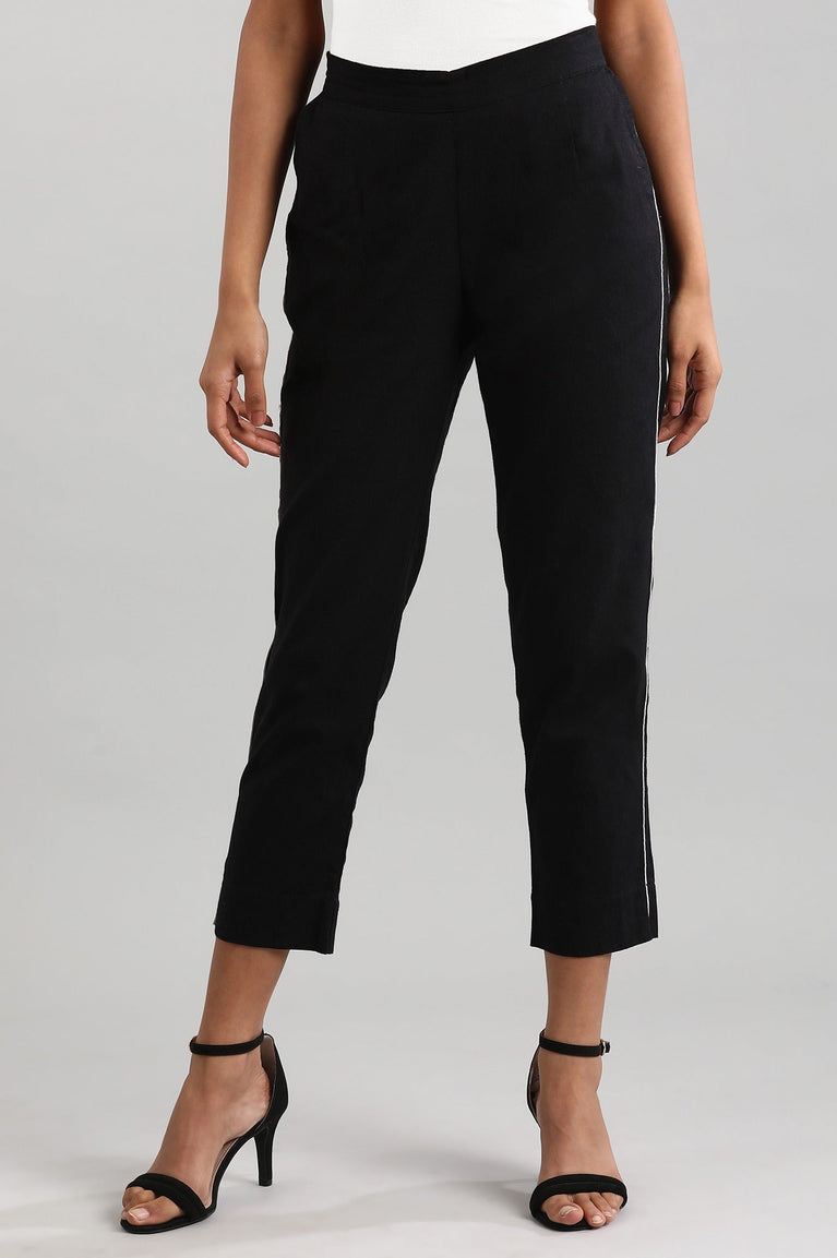 Black Solid Slim Fit Trousers With Elasticated Waist
