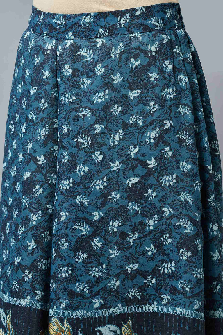 Blue coloured a-line culottes with floral print detail and a partially elasticated waistband.