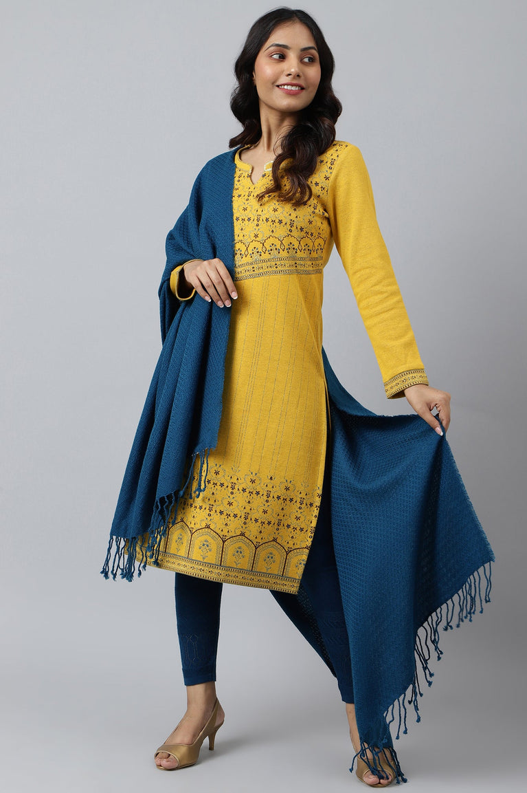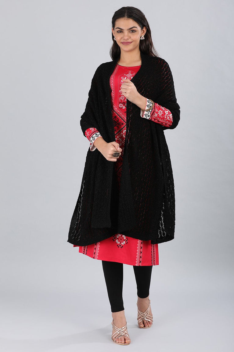 This basic shawl is an absolute must-have to survive in the chilly winters. Its curated in soft acrylic yarns knitted together to create a subtle design. It has fringes at the two ends of the shawls.