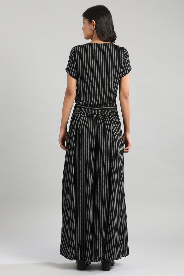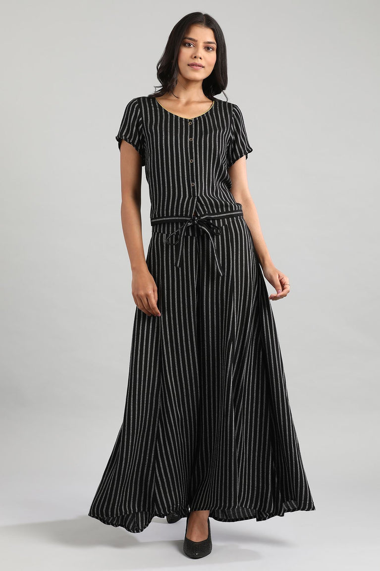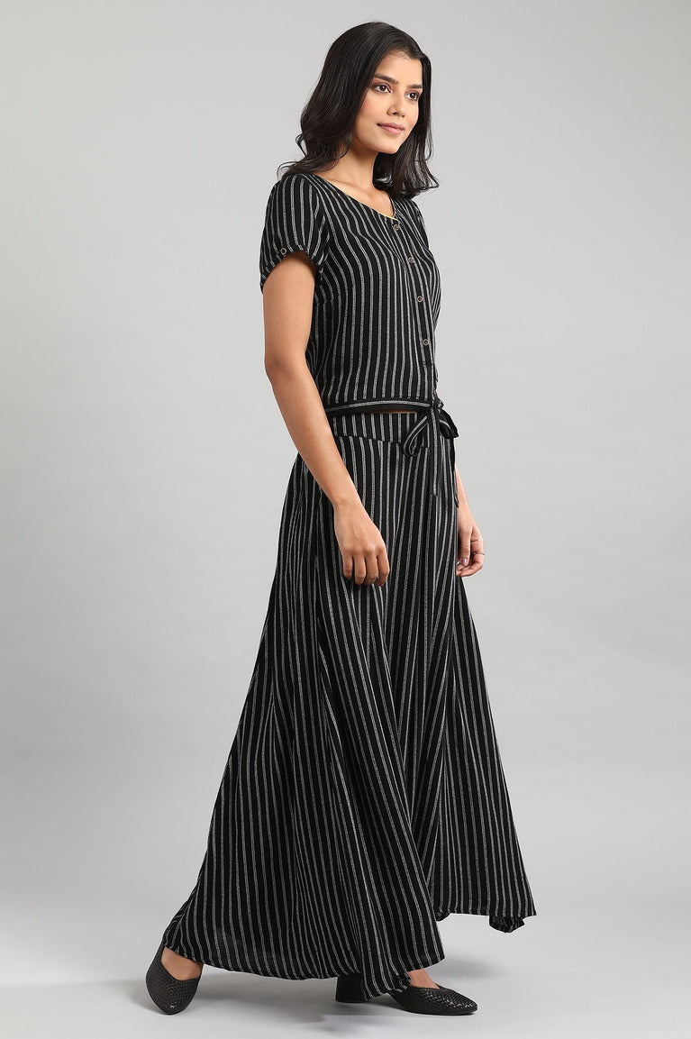 Black Round Neck Yarn-Dyed Top