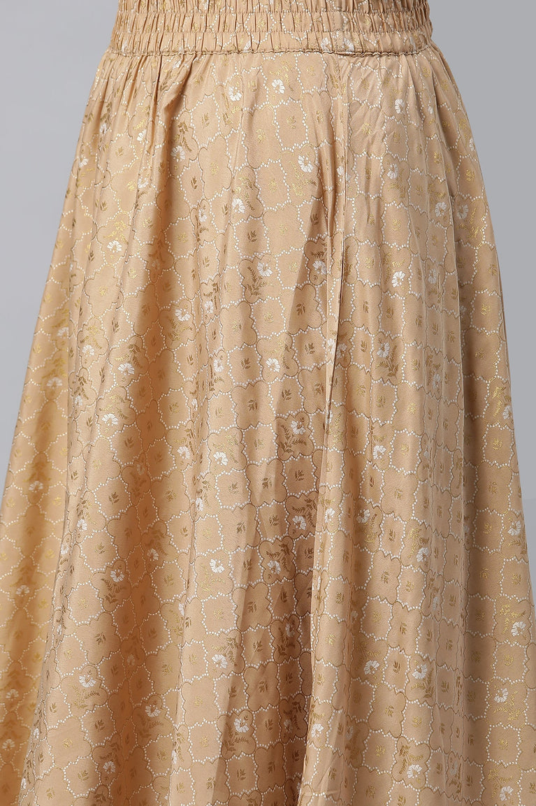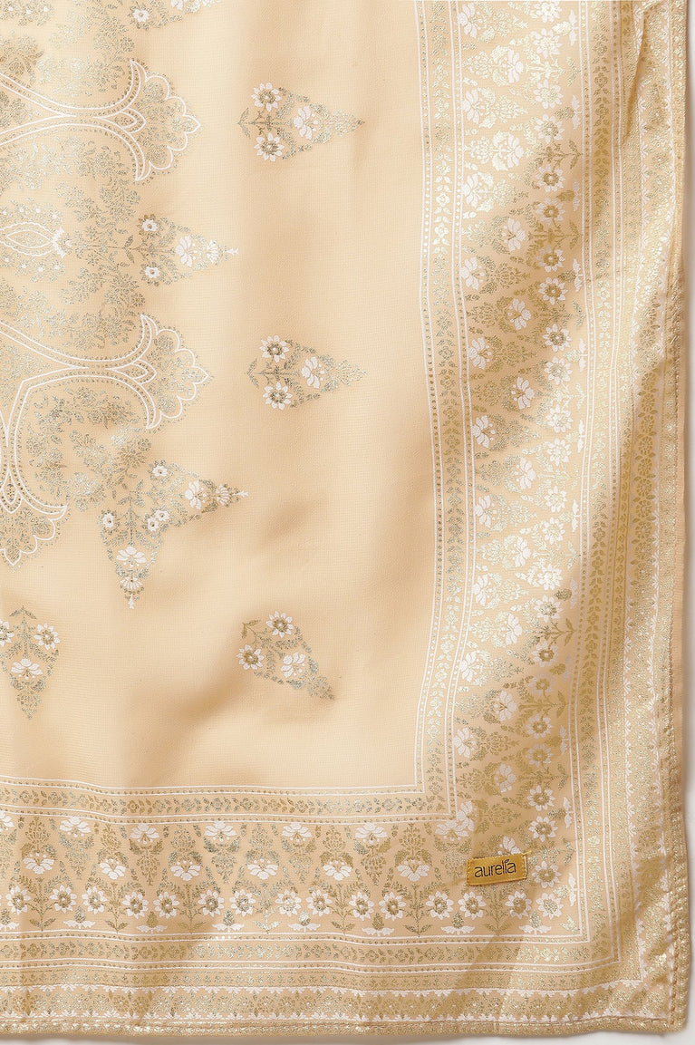 Beige Yarn Dyed Short Kurta with Lace, Embellished Palazzo and Jacquard Dupatta