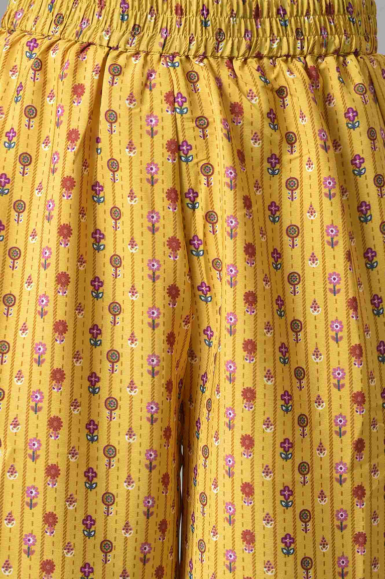 Be it family get together or a light festivity, this ethnic kurta and palazzo set is a must-have. Style yourself in this pretty feminine set, which includes a straight fit kurta and paired with printed straight palazzo.