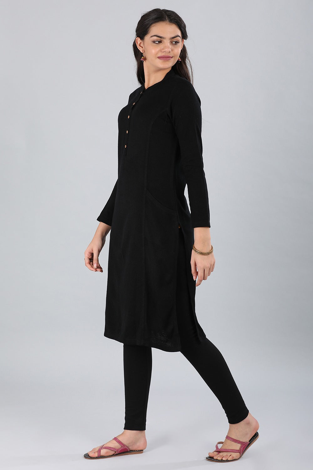 Black Mandarin Neck Yarn-dyed Winter kurta