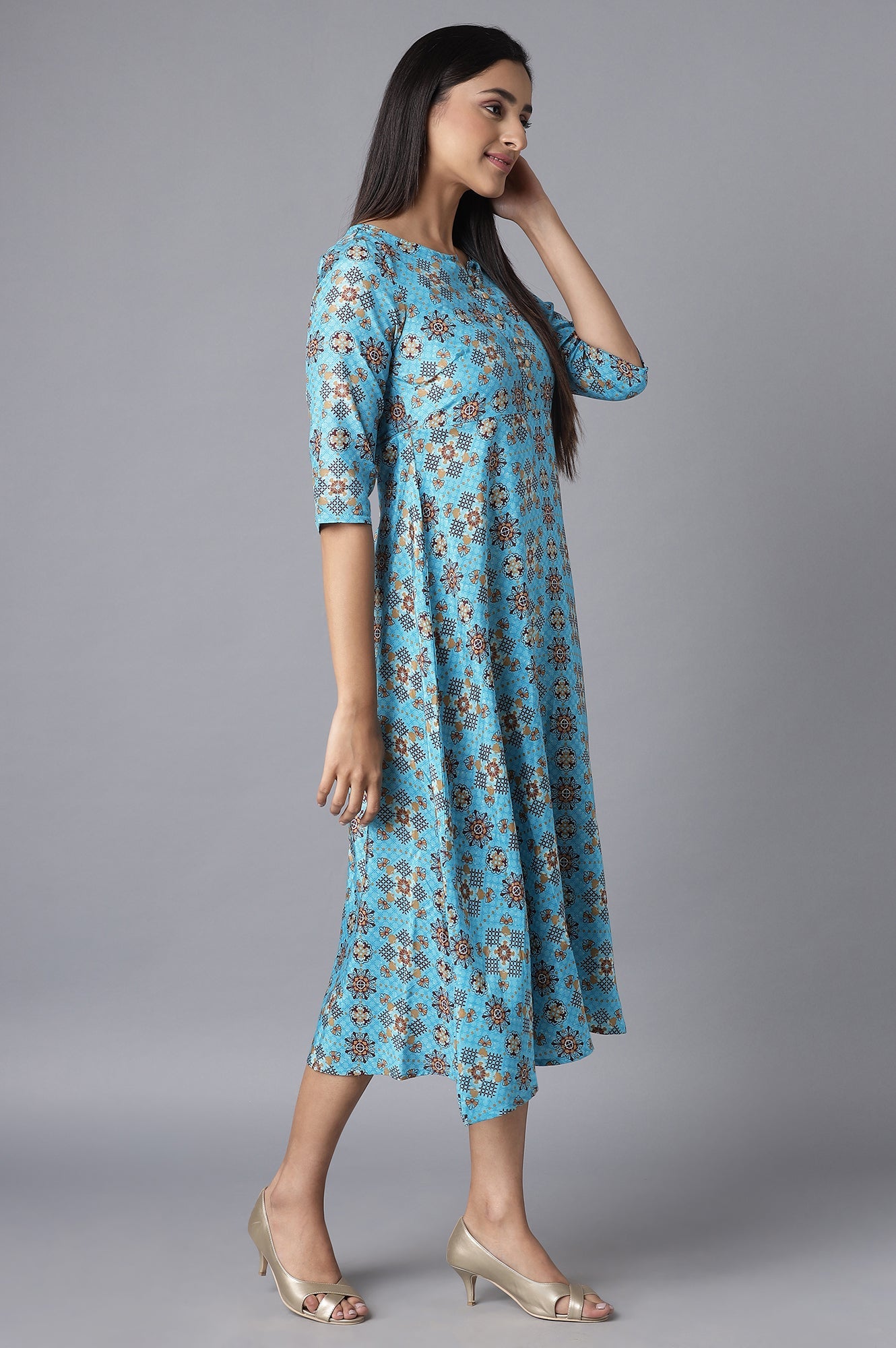 Blend into festivities with this elegant and ethnic dress. With this dress you can pull of that runway look you've been waiting for. Crafted in premium quality poly shantung, it features A-line silhouette and dori at back. The authentic floral print pattern makes the piece a must-have addition for the wardrobe.