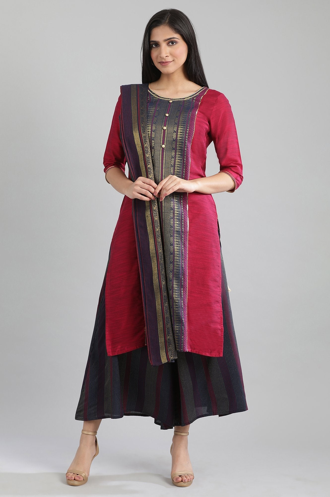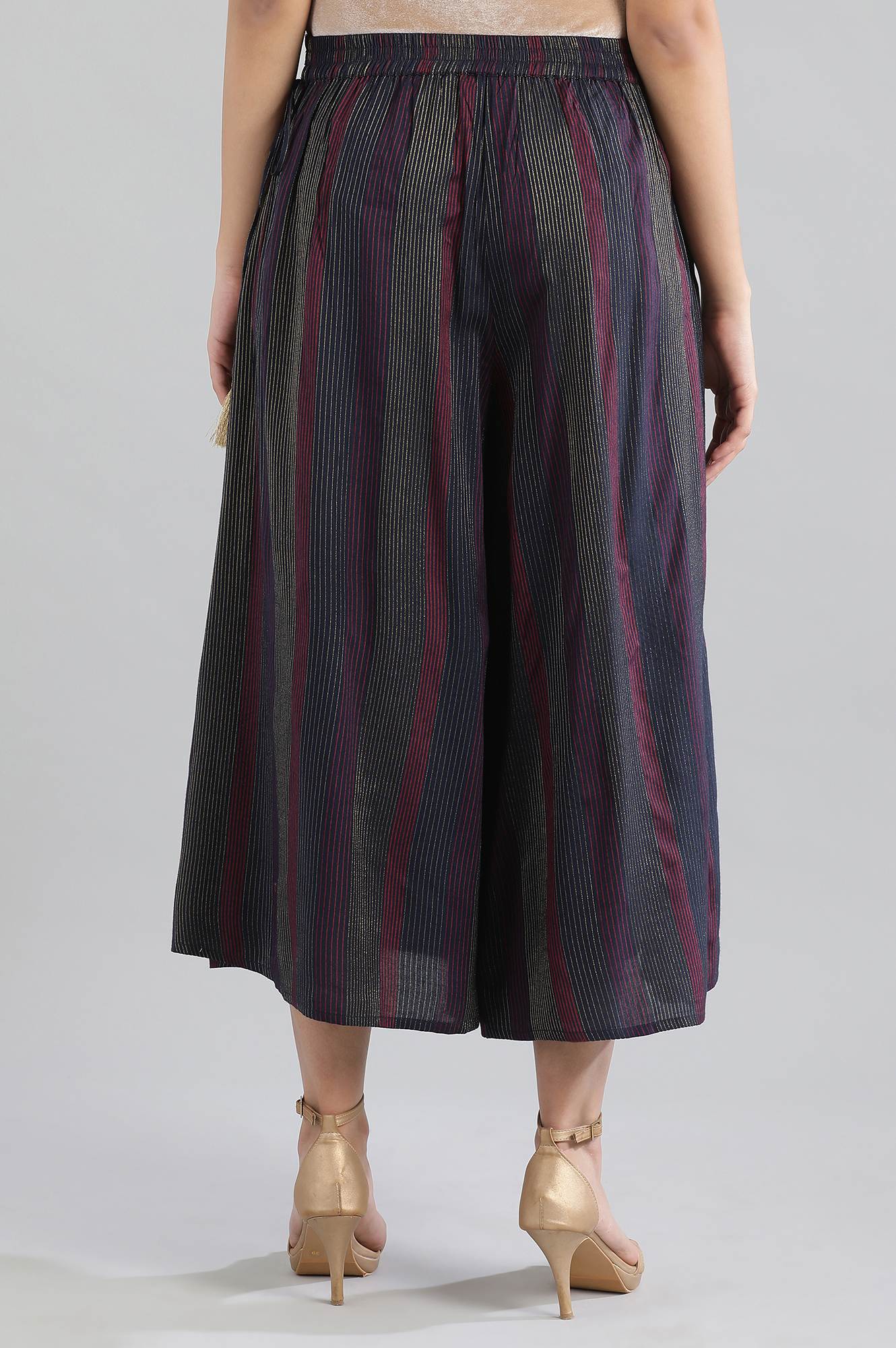 Blue solid straight fit palazzos with elasticated back, striped detail and tie-up detail.