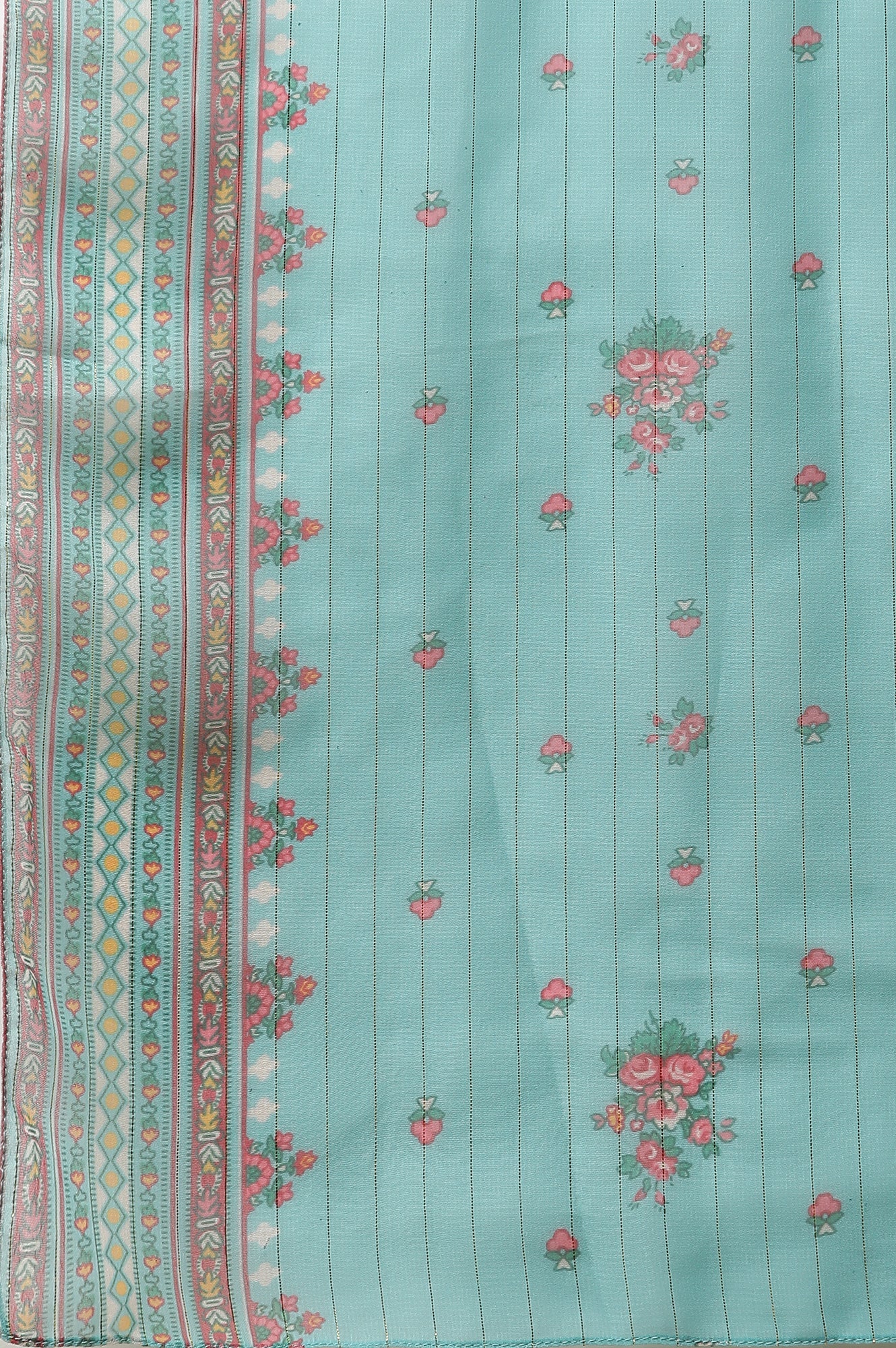 Get yourself this sprightly printed georgette dupatta, with golden lines running through it's entire length over a bed of tiny floral motifs. Pair this dupatta with a wide variety of styles and give your look a fresh stylish touch.