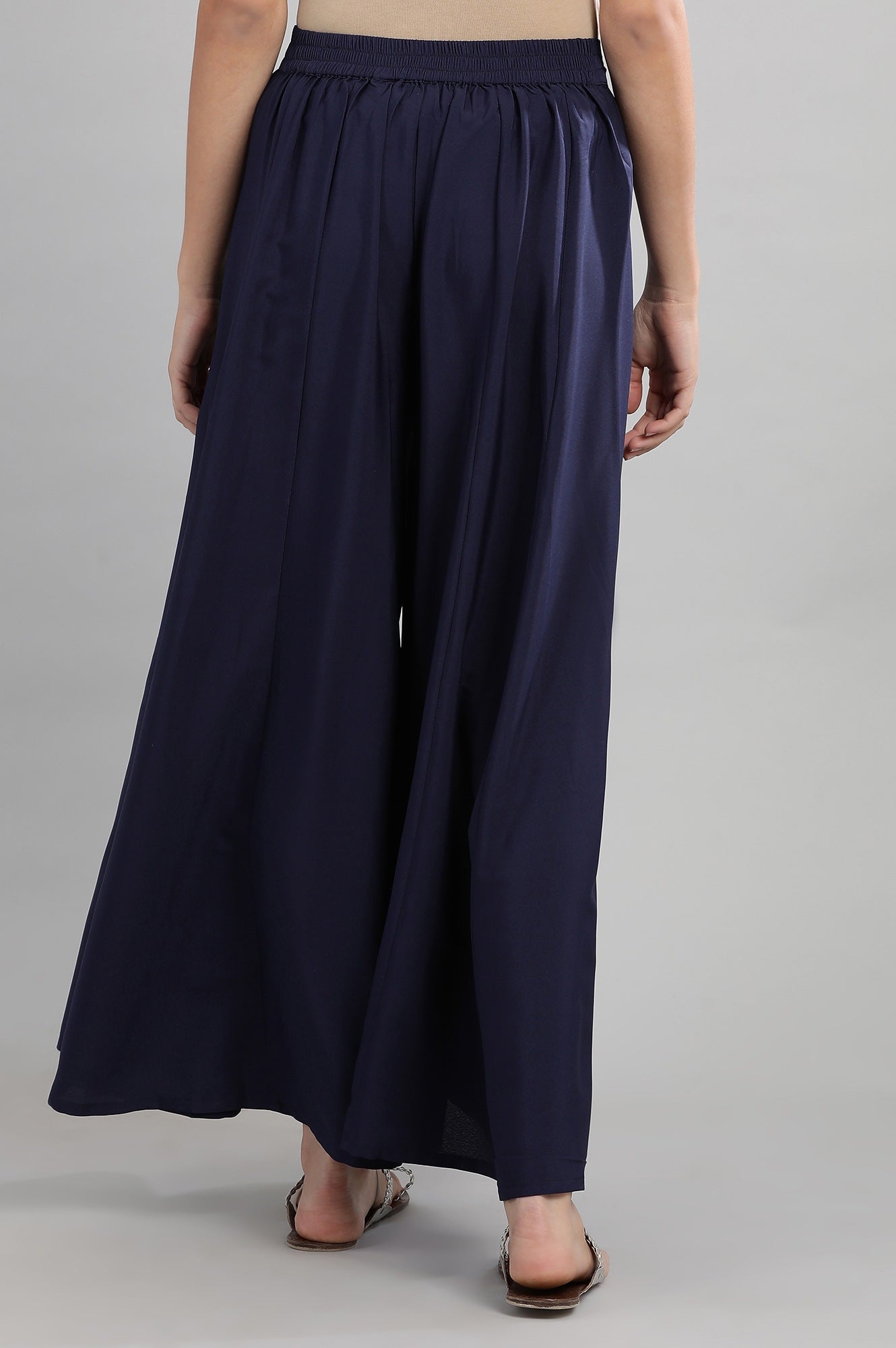 Blue Solid Flared Palazzos