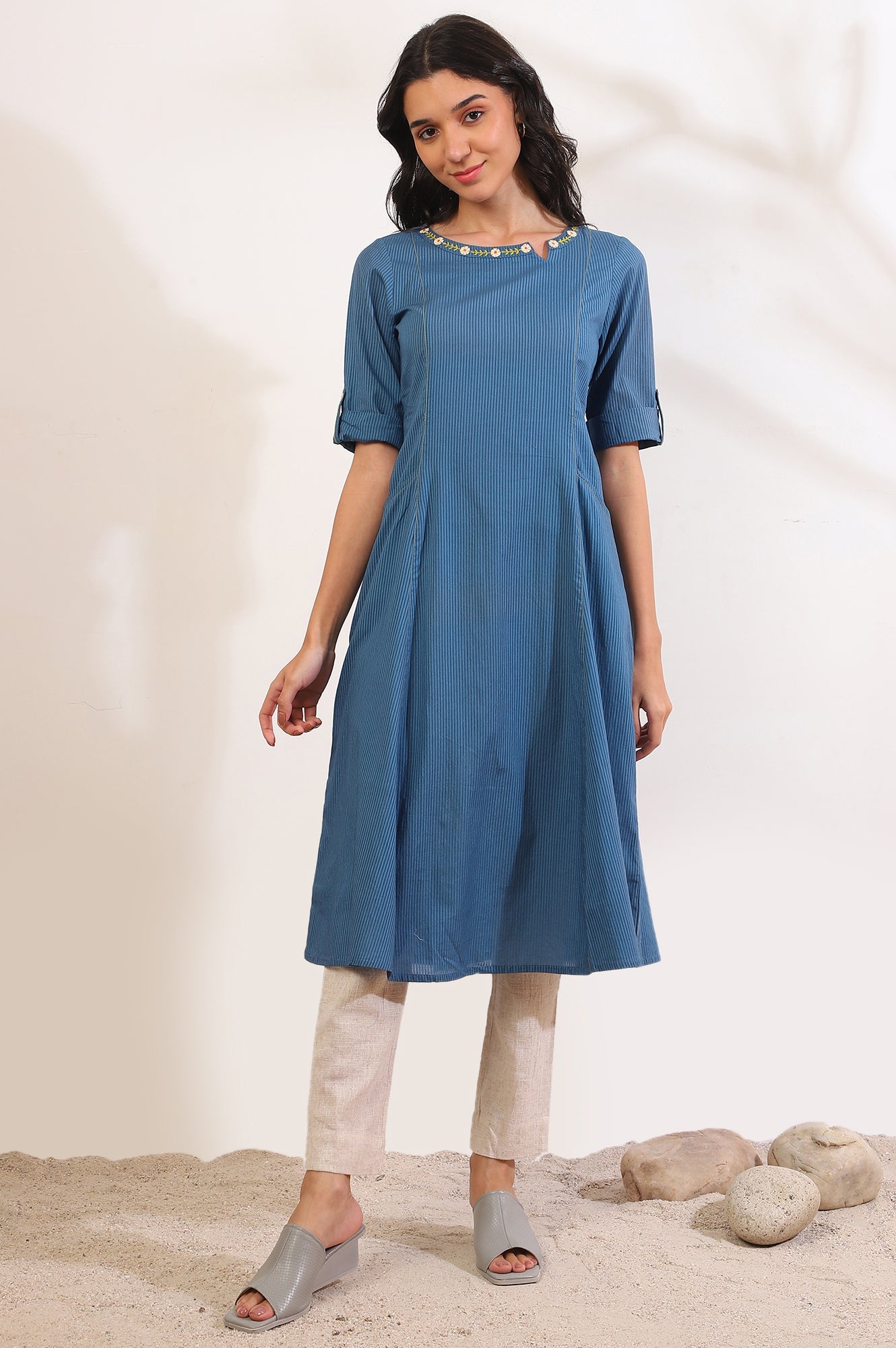 Discover elegance and comfort with this Aurelia women's fusion kurta in a stunning Moroccan blue shade. Crafted from 100% pure cotton, this mid-calf length kurta offers breathability and softness for all-day wear. The three-quarter sleeves and round neckline add a touch of sophistication to this casual ensemble. The straight silhouette flatters various body types, making it a versatile addition to your wardrobe. Woven with precision, this kurta showcases Aurelia's commitment to quality craftsmanship. Perfect for casual outings or relaxed gatherings, this kurta combines style and comfort effortlessly. The rich Moroccan blue hue adds a pop of color to your outfit, making you stand out in any setting. Embrace the fusion of traditional and modern elements with this Aurelia kurta, designed to keep you comfortable and stylish throughout the day.