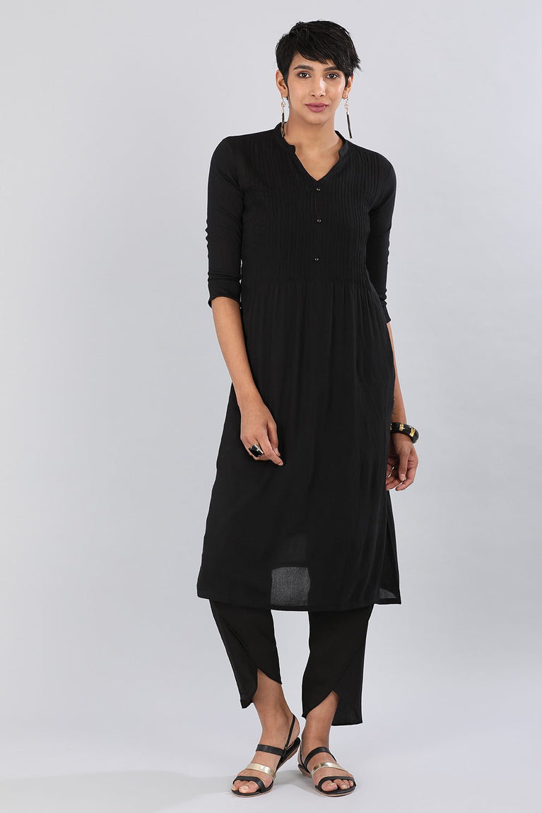 Elegance finds form in this black thread work kurta and palazzo set, ideal for both festive gatherings and evening soirees. Featuring detailed embroidery, the black straight silhouette exudes grace and refinement. Crafted to celebrate simplicity with elevated accents, this ensemble pairs timeless colour with intricate threadwork. The matching palazzo bottoms enhance comfort and lend flow to the outfit, making it an easy favourite. This kurta palazzo co-ord transitions effortlessly from formal wear to celebratory attire, depending on how you accessorize it. The black thread work kurta stands out when styled with metallic accessories or a vibrant dupatta. Whether you're dressing for a traditional event or a dinner party, this outfit is your understated yet impactful choice. Keep your look monochrome or layer with gold elements for drama. This kurta palazzo co-ord brings effortless charm to any festive wardrobe.
