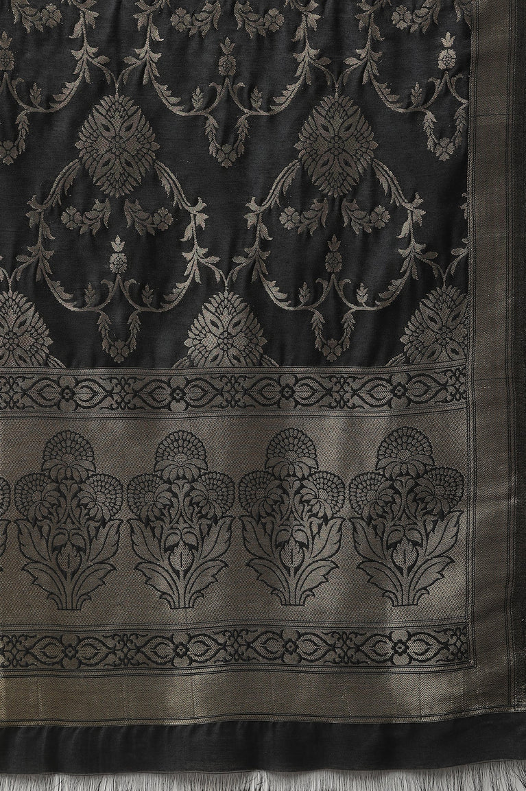 Black kurta set for women adorned with zari embellishments, this ensemble is crafted for festive elegance. The kurta features fine detailing, paired with sleek pants for modern balance and a dupatta for completion. Ideal for weddings, festive celebrations, or family functions, this set ensures a striking appearance. The black hue adds sophistication, while the zari embellishment provides shimmer and charm.