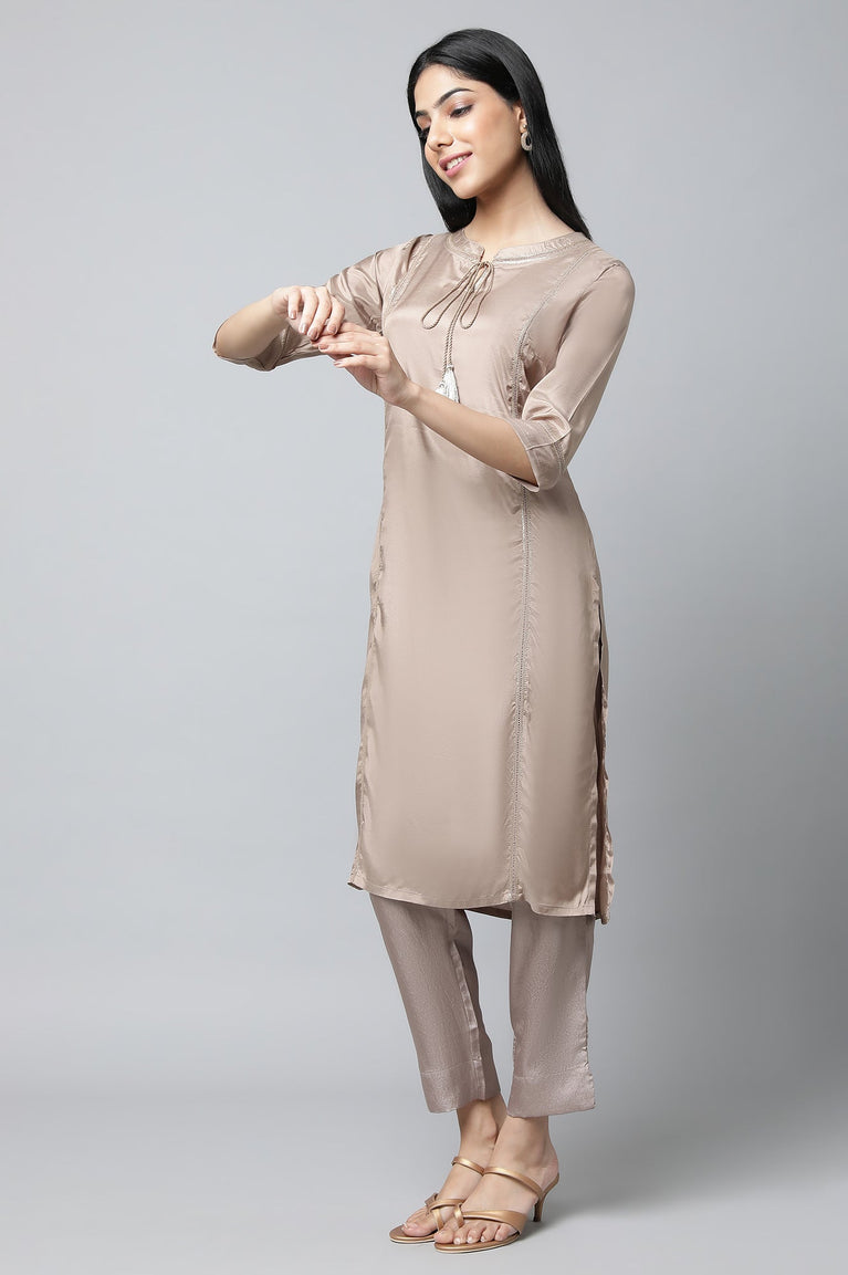 There'S Nothing Quite Like Our Classic Style kurta. Step Out In This Elegant Brown Coloured kurta Adorned With Lace Details & Tassels Tie-Up.