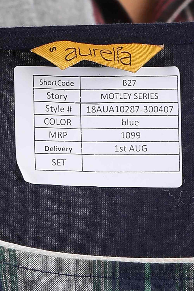 Plume blue printed straight kurta in band with V collar and regular three-quarter sleeves.