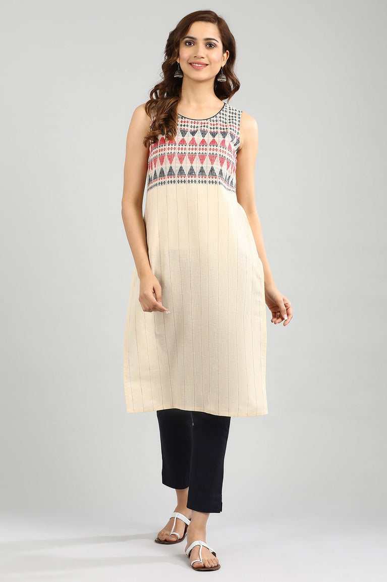 An Easy-Wearing kurta In A Breezy Floral Print Made With 100% Cotton. It Features A Square Neckline Adorned With Subtle Lace Detail And A Little Pop Of Style On The Sleeves. Throw It On With Our Super Soft Contrasting Colour Tights Or Carry It As It Is.