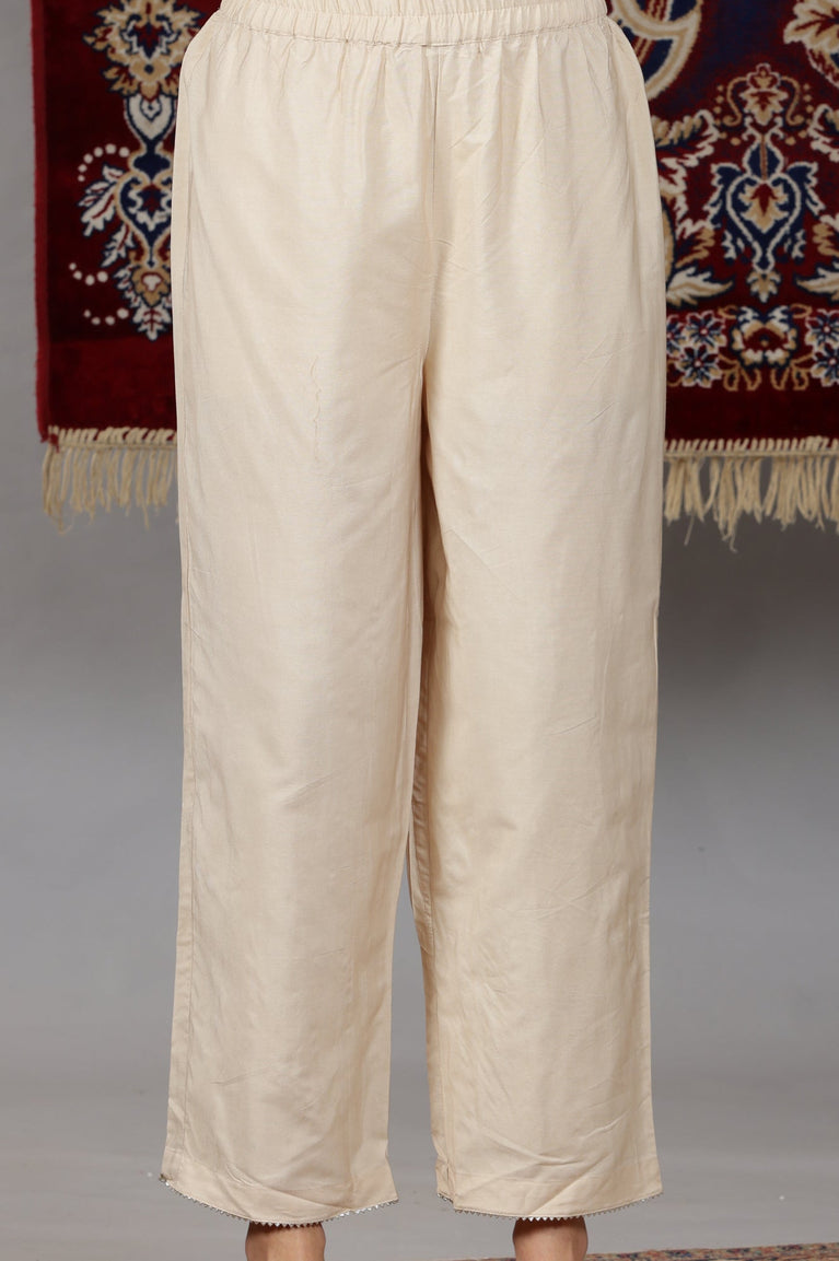 Beige Viscose Rayon Straight Kurta and Trouser Set