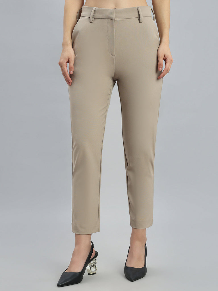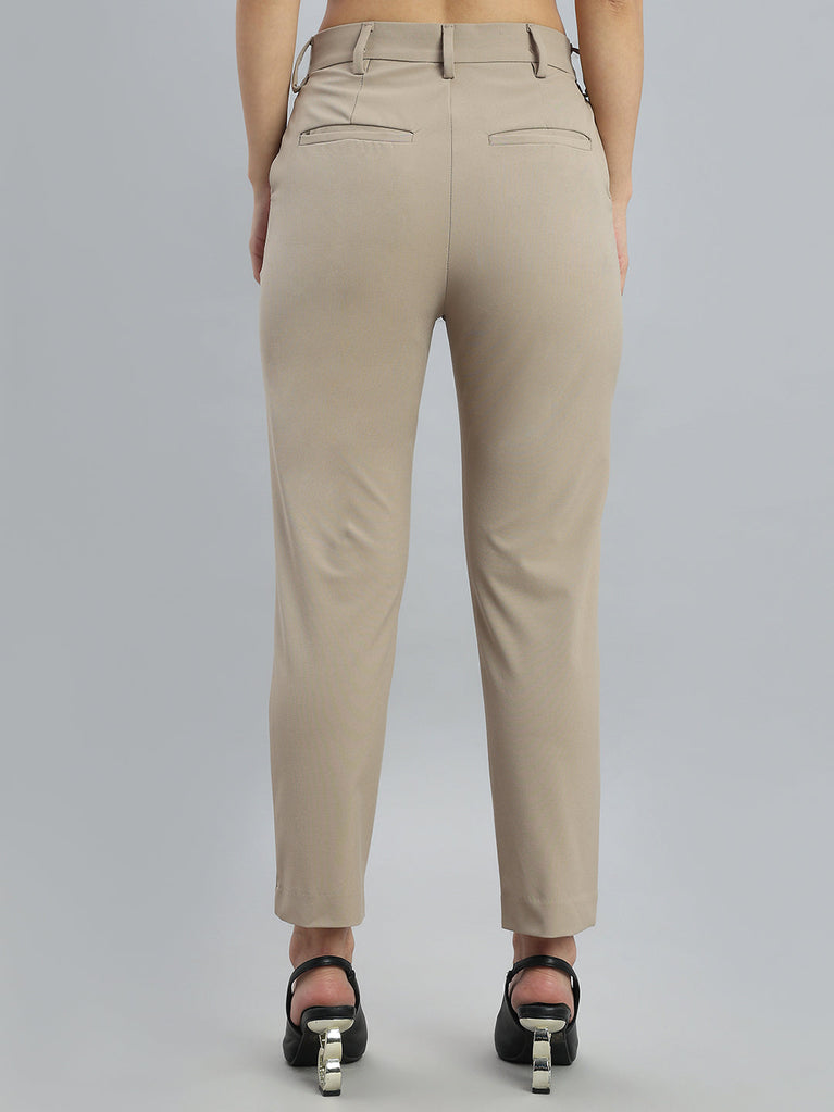 Stay warm and effortlessly stylish with these versatile Beige Smart Fit Pants, crafted from a blend of 65% Polyester, 30% Viscose, and 5% Elastane for comfort, durability, and stretch. Designed in a solid finish with a tapered fit, these pants offer a sharp, modern silhouette. The mid-rise waist and ankle-length cut ensure a flattering and polished look. Featuring two side pockets and two back pockets, they combine functionality with style. Finished with a zip and hook closure and a comfortable elastic waistband, these pants are perfect for smart casual and workwear styling.