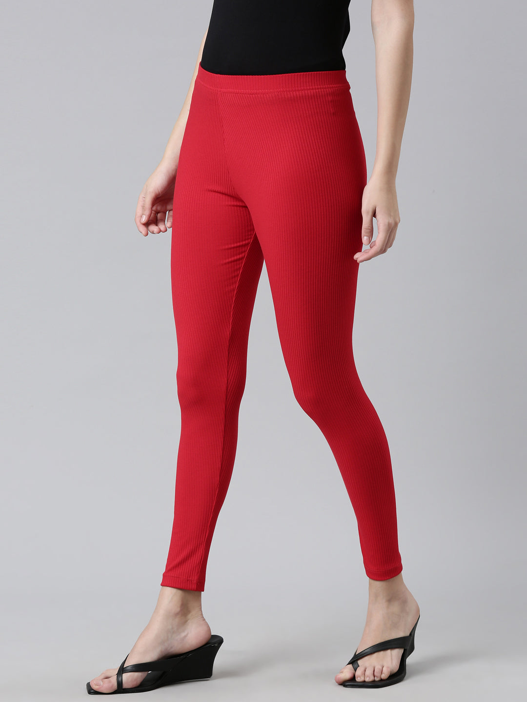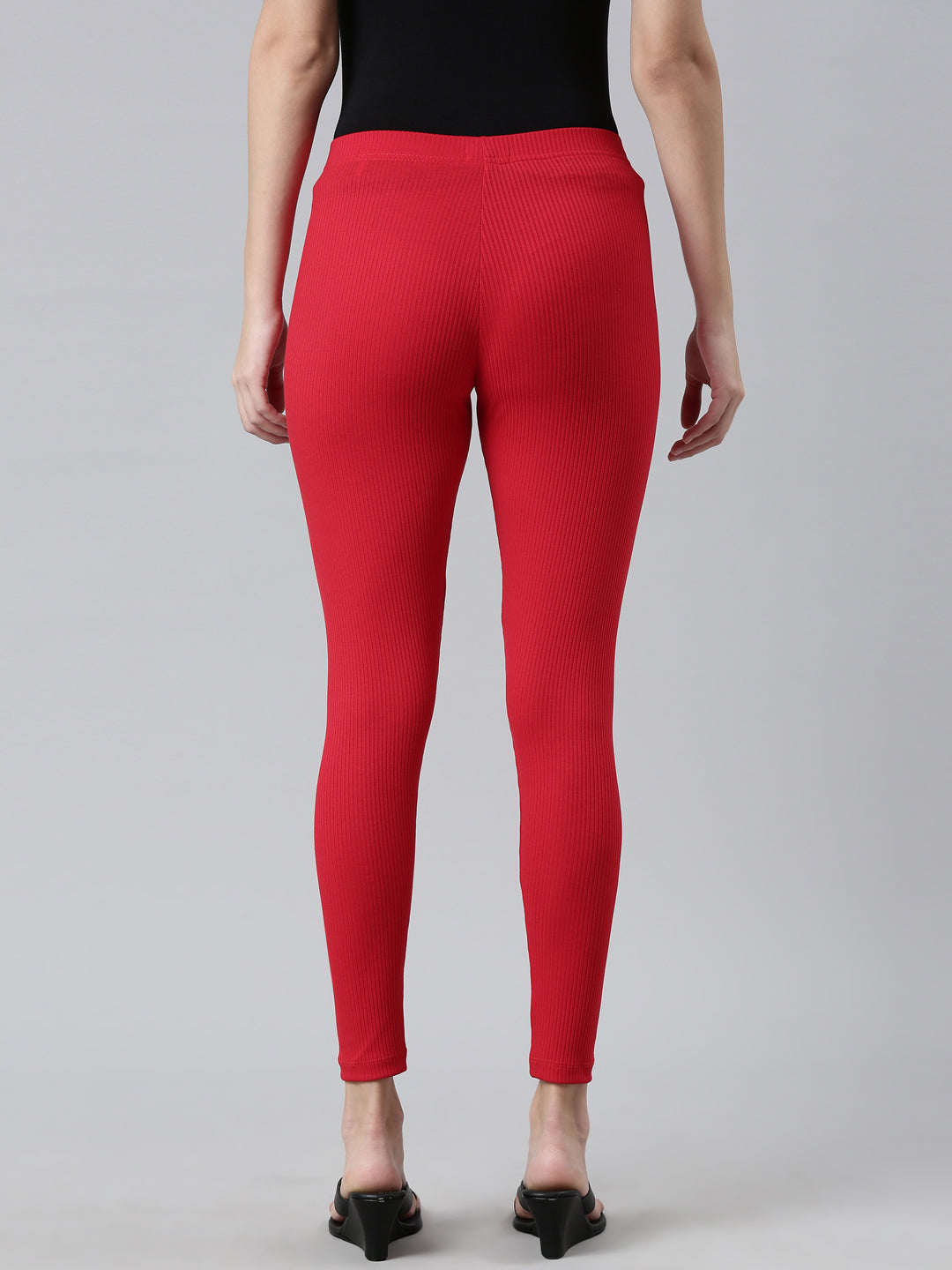 Go the ethnic way with our Solid Dark Red Ribbed Leggings. Made from Rayon & Spandex it has a elasticised waistband, slim fit & is of ankle length
