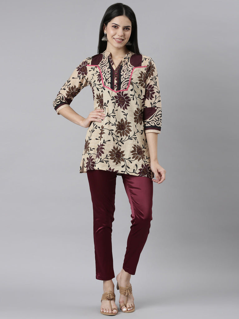Be brunch ready or a board room meeting in a jiffy with the Stripe Beige Printed Pencil Pants. Made from cotton, it is a tapered fit pant with ealsticsised waistband with drawstring closure & slant pockets.