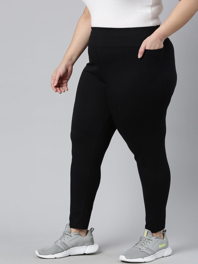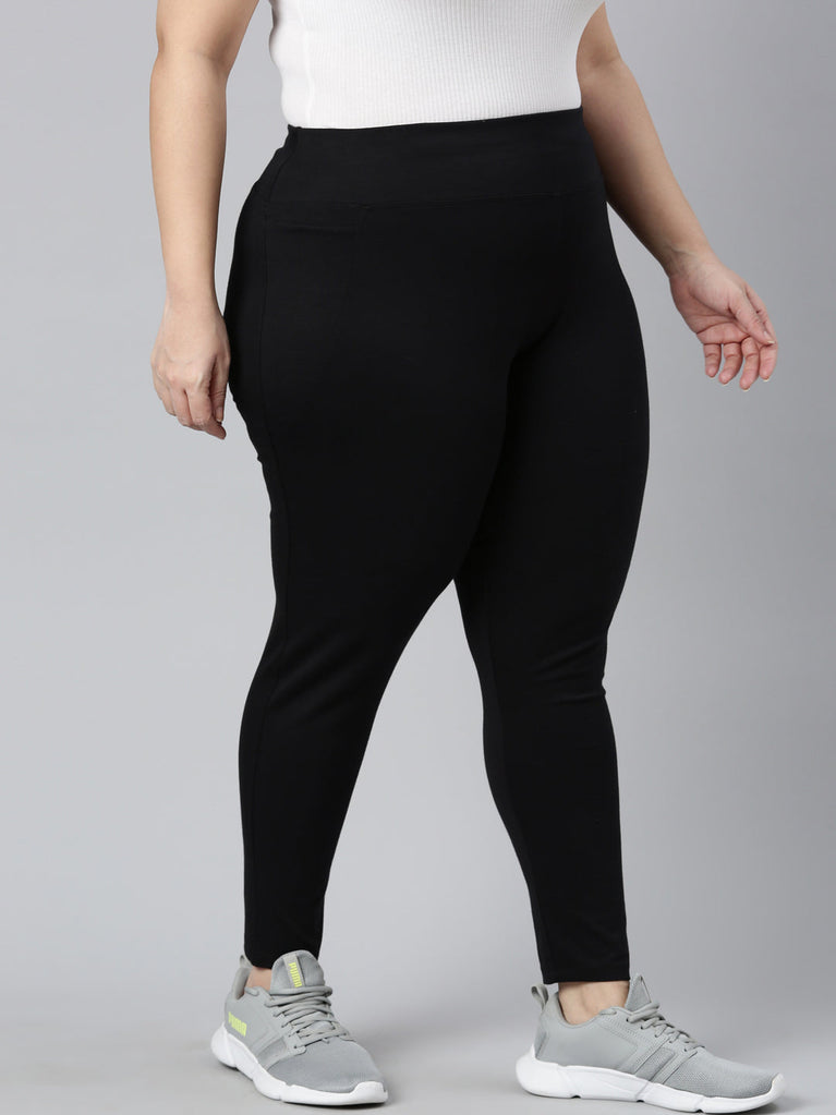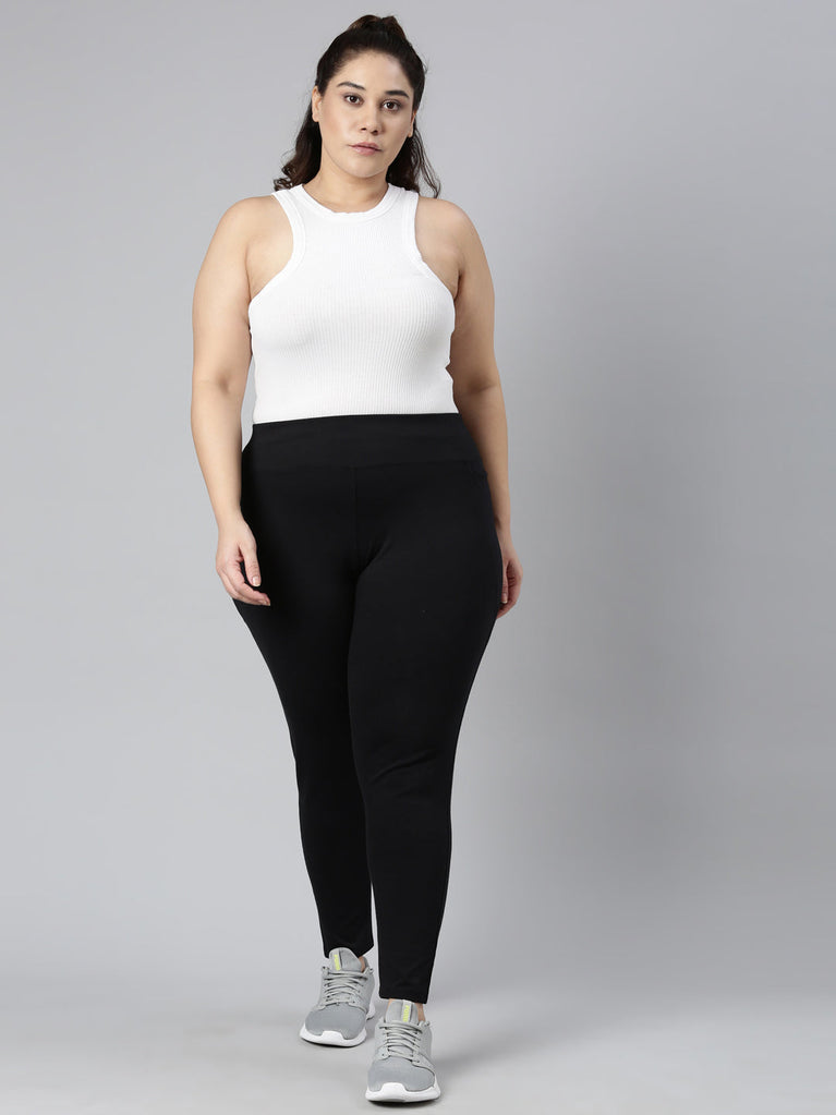 Have fun while sweating out in a pair of comfortable Solid Black yoga Leggings. Made from cotton stretch fabric, it has a high rise elasticised waistband & is of ankle length.