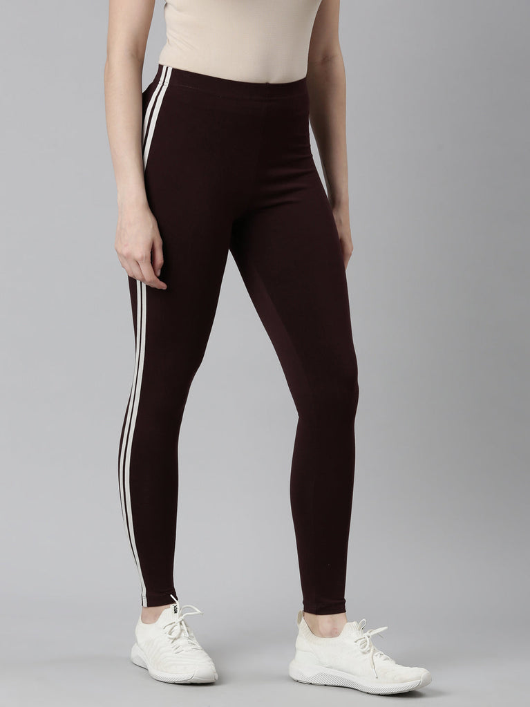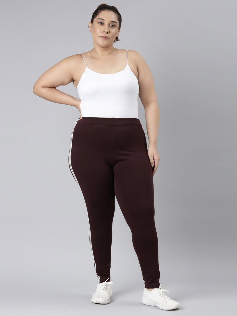Bringing your A-game to any fitness regime with our comfortable Brown Solid Side Stripe Active Leggings. Made from cotton stretch fabric, it has a elasticised waistband & a contrast side striped panel for a sporty look.