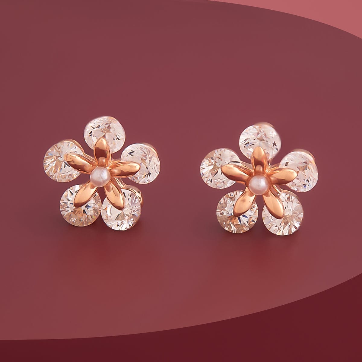 Kushal's Fashion Jewellery 92.5 Pure Silver Flower Design Earring
