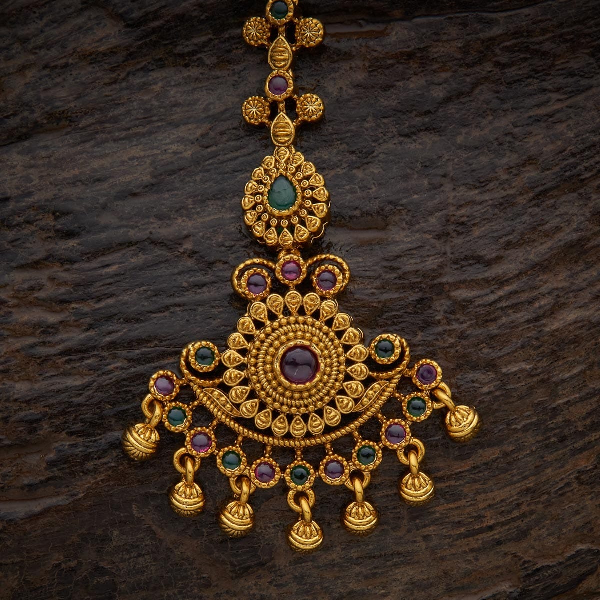 A magnificent Tikka can make your outfit go from bland to eye-catching, which is why we present our latest antique Tikka. The best part of this Tikka is the gold polish that compliments the shine of the ruby, green, and ruby-green stones used in it. Wear it with your favourite outfit.