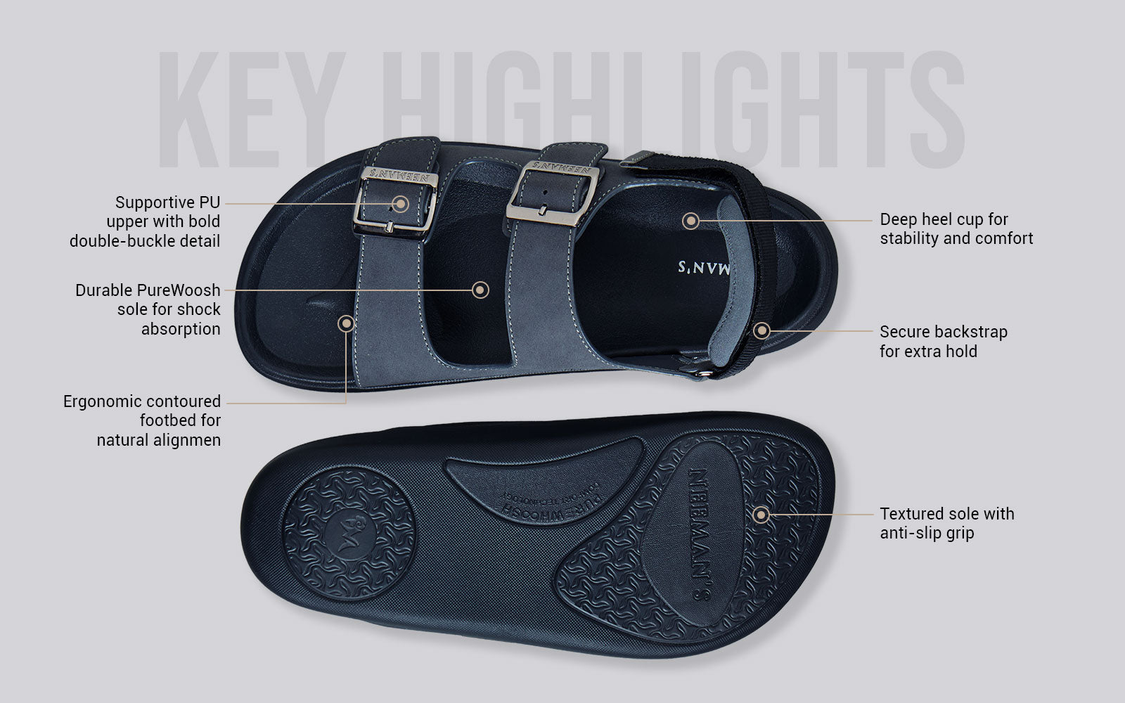 Meet the all-terrain all-rounder: Neeman’s PureWoosh Duo Glides. Built with bold buckles, a supportive backstrap, and all-weather toughness, this pair delivers comfort that shows up and stays put. From chill looks to chaotic days, its water-resistant build, contoured footbed, and grippy sole have your back—every step of the way.