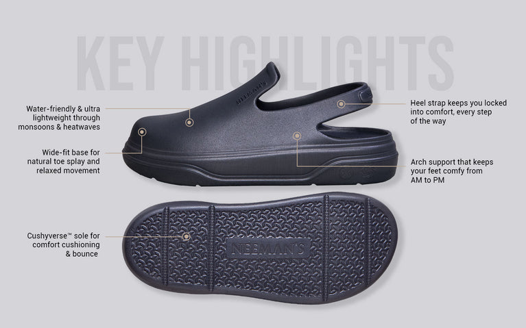 Our first-ever Clogs had to be special. Presenting the Cushers - Crafted for your feet's love for cushioning! With our uniquely engineered Cushyverse™ technology, the Cushers Clogs bring bounce, support, and comfort extending from mid-foot to heels to your sole.