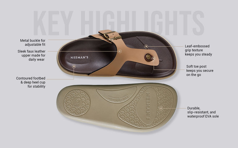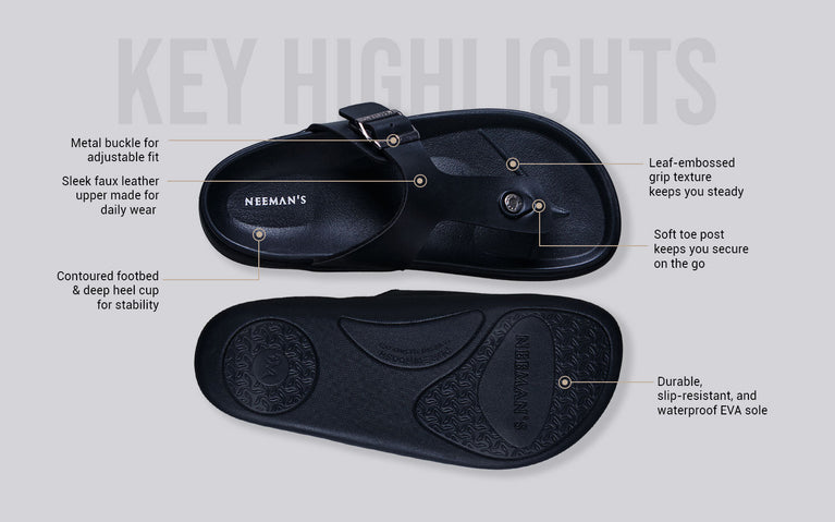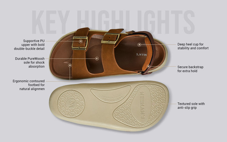Say hello to a slide that gets it all right—style, support, and ease. PureWoosh Flow is Neeman’s spin on the timeless double-buckle silhouette, now reimagined for modern-day comfort seekers. With a sleek matte finish and soft contoured footbed, it’s built to slide into any outfit and any mood. Rain-ready, ridiculously comfy, and made to move with you, this one's a true multitasker. From weekday errands to weekend lounging, it brings just the right amount of polish to your off-duty days.