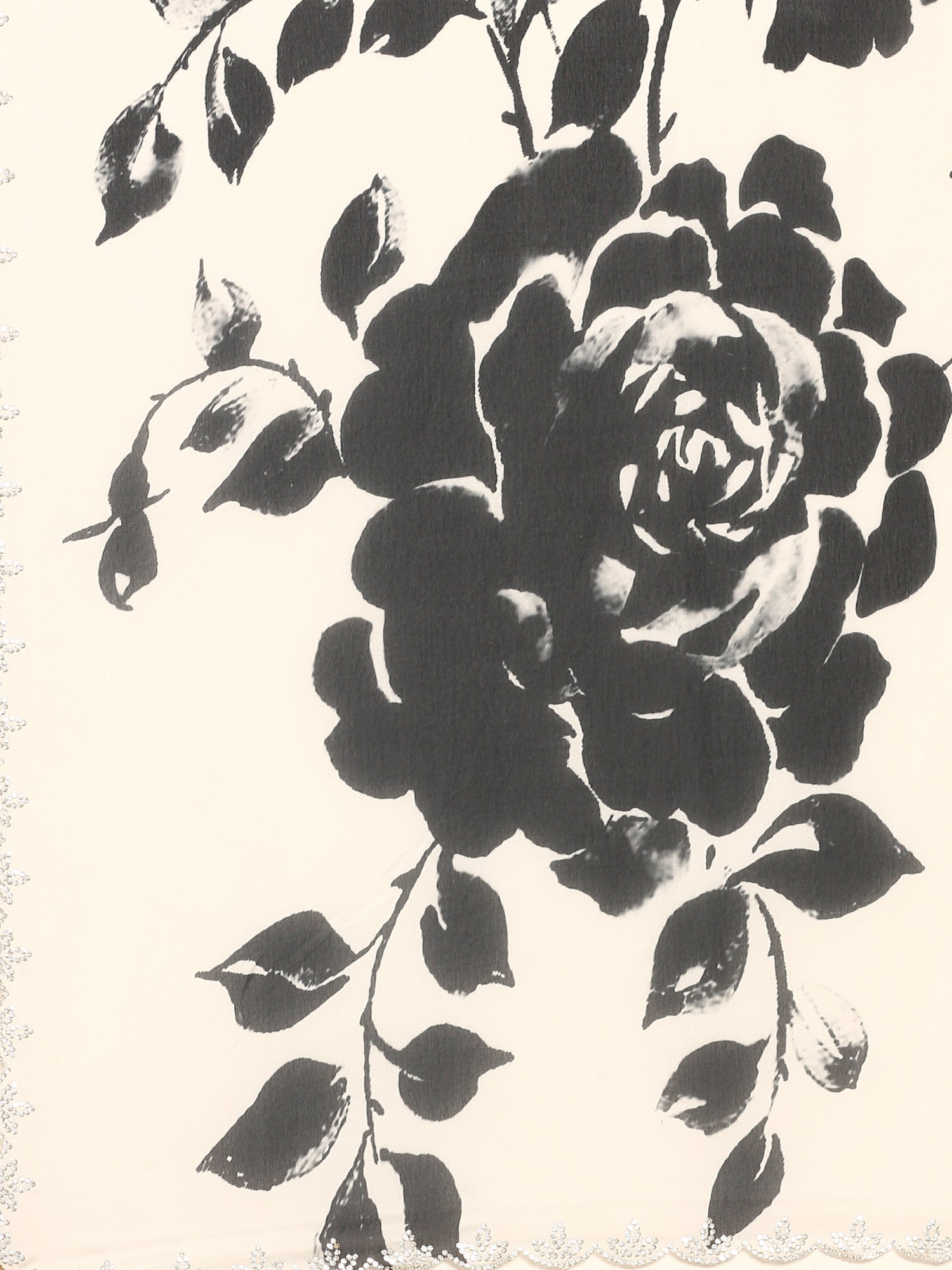 Black & white floral printed satin saree with swarovski embroidery