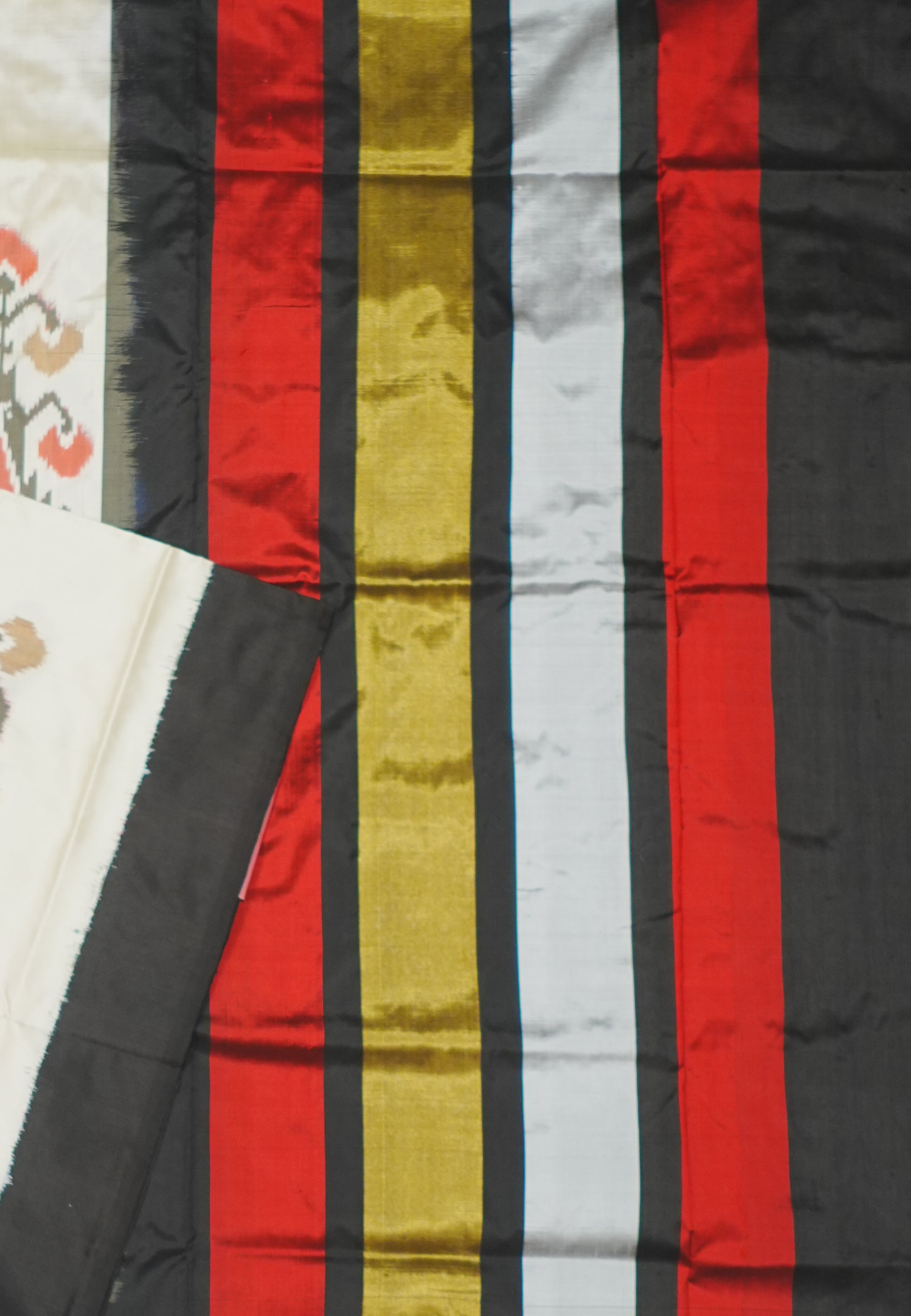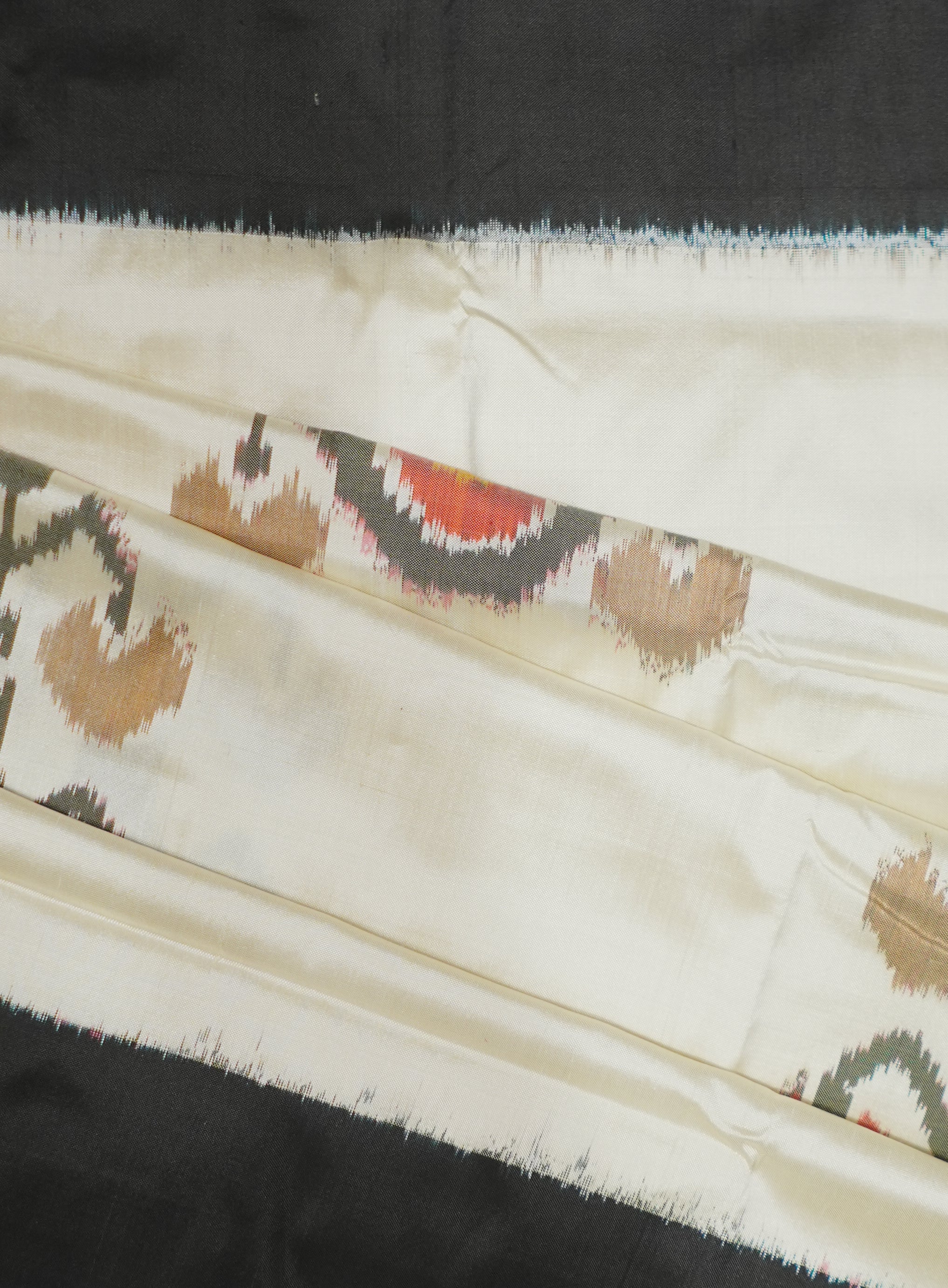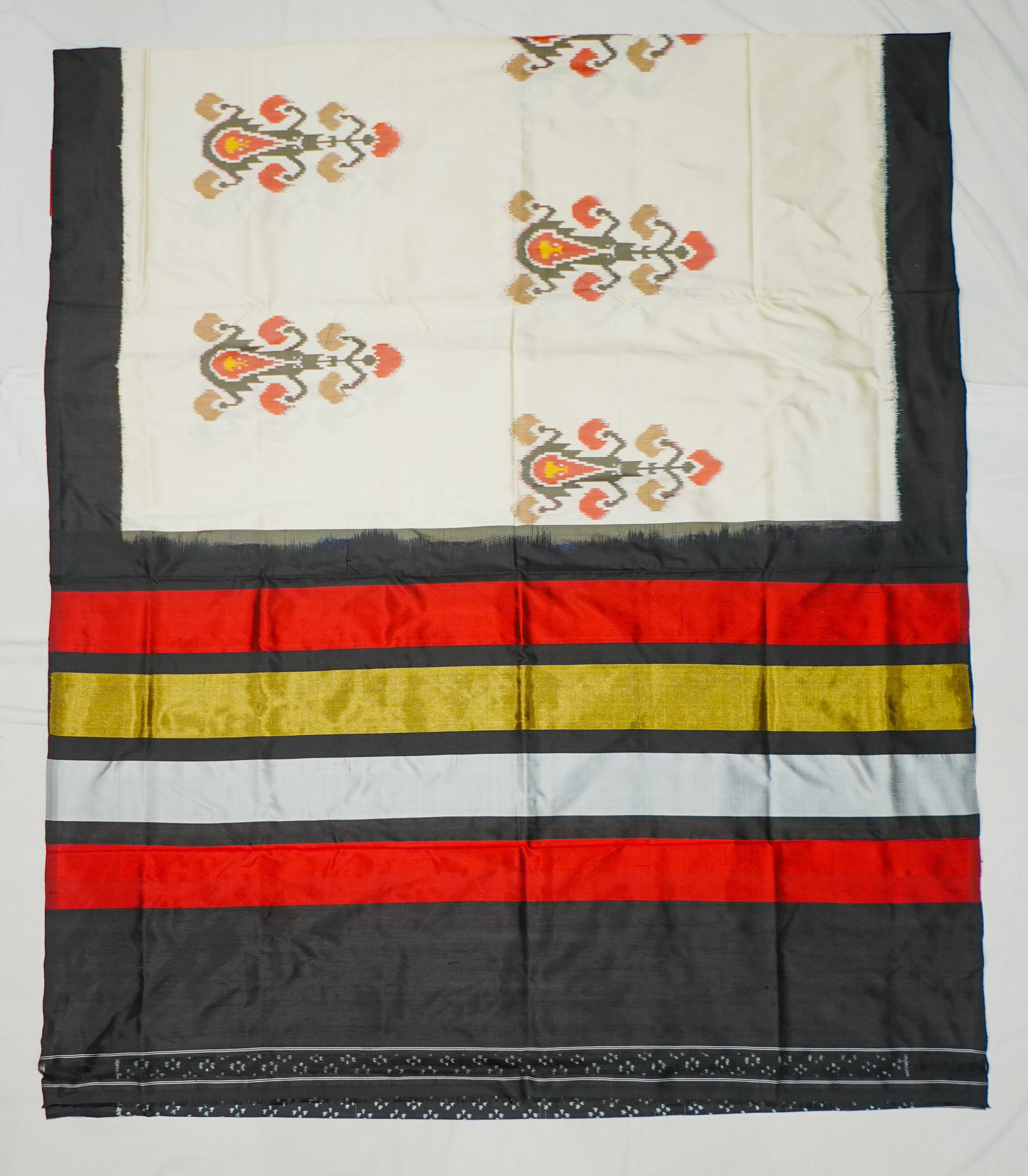 Elevate your ethnic wardrobe with this exquisite Cream Patola Handloom Saree, a timeless piece that celebrates traditional craftsmanship. Featuring an all-over design adorned with vibrant multi-colored buttas, this saree seamlessly blends classic elegance with contemporary appeal. Handwoven using authentic patola techniques, each saree is a unique creation that showcases intricate patterns and superior quality. Perfect for festive occasions, celebrations, or adding grace to your everyday ensemble, this cream-hued saree pairs beautifully with traditional jewelry and accessories. Embrace the artistry of Indian handlooms and make a statement with this versatile, sophisticated piece.
