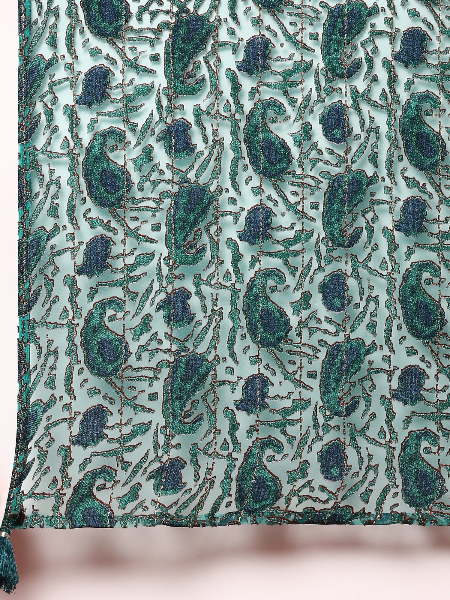 Elevate your ethnic wardrobe with this elegant green muslin three-piece suit set, adorned with delicate embroidery that adds a touch of sophistication. The breathable muslin fabric ensures comfort throughout the day, while the coordinating pieces offer versatile styling options for any occasion. Perfect for festive gatherings or casual outings, this suit set combines tradition with effortless grace.