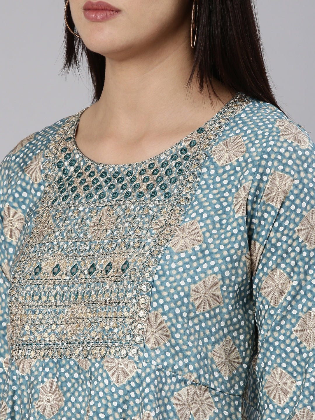 Neeru's Blue Regular Straight Yoke Design Readymade suits