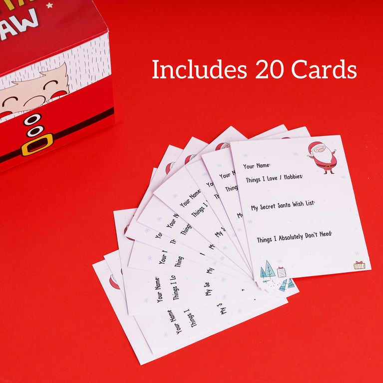 If your Secret Santa exchanges usually turn into “umm… thanks?” moments, here's a game to fix that. Everyone writes down what they love, what they hate, and what they secretly wish for and then the draw decides the rest. It’s fun, interactive, and guarantees gifts people actually enjoy.Perfect for offices, teams, groups, classrooms - anyone playing Secret Santa.Specifications -Size of the Box : 10x10x10.5 cmsNumber of Cards : 20