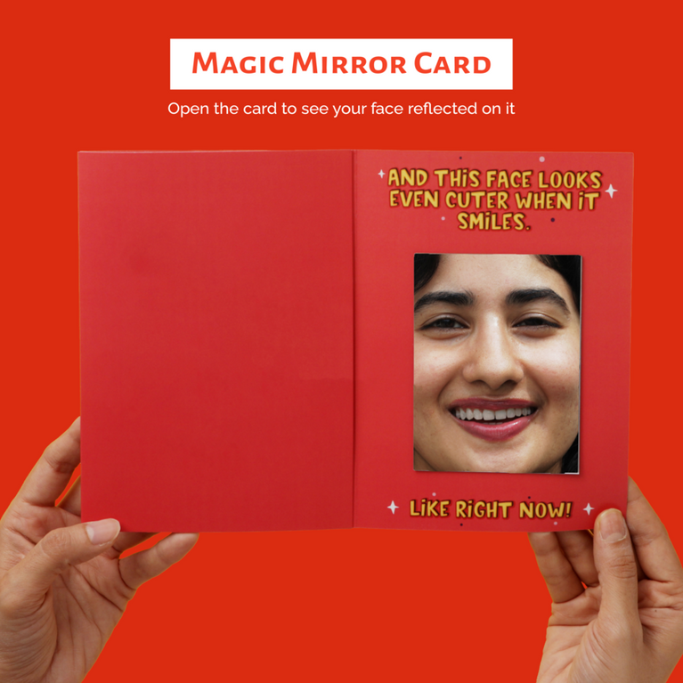 We all have that one person who makes our lives easier. Thank the person who helped you survive 2025 with this magic mirror card.This New Year’s greeting card is unique, adorable, and guaranteed to make your loved one smile.Front of the card: The only good thing about 2025 is.Inside of the card (which also has a mirror): You. You’re the best thing to have happened to me. Like, ever! Thank you for existing.Specifications-Approximate size of the card: 12.5 x 17.8 cms