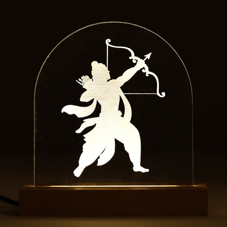 Bring home the divine glow of Shri Ram with this beautifully designed LED Lamp. Featuring an elegant silhouette of Lord Ram with his bow and arrow, the lamp spreads a warm radiance that instantly elevates your festive decor. Perfect for Diwali, Ram Navami, or as a spiritual keepsake, it creates a serene and devotional ambience in any space.