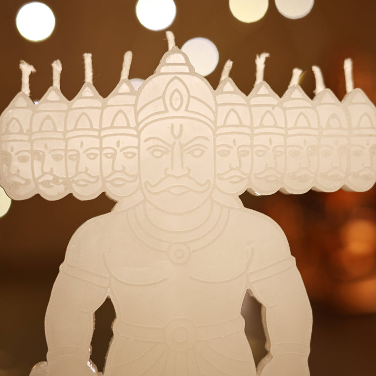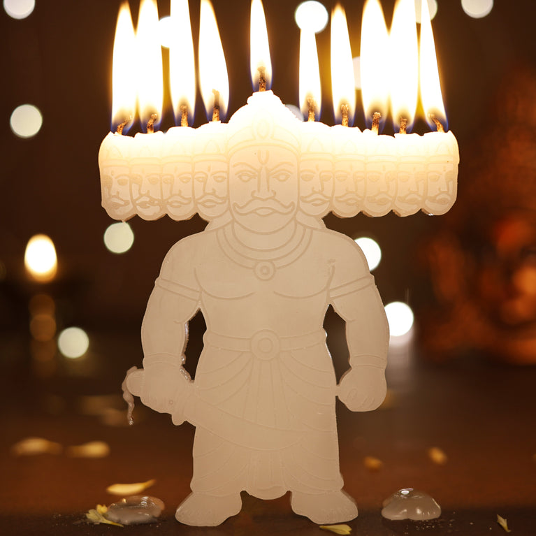 Celebrate the spirit of Dussehra and Diwali with this unique Ravan Candle. Crafted in the form of the ten-headed Ravan, it beautifully represents the age-old tale of good triumphing over evil. When lit, the candle creates a warm and festive glow, making it a striking addition to your décor.