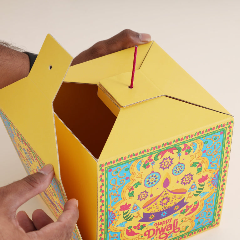 Introducing India’s First DIY Diwali Patakha Box – a festive surprise that looks like a cracker but unfolds into a magical hamper! Celebrate the joy of Diwali with the thrill of lighting something special, without the noise!