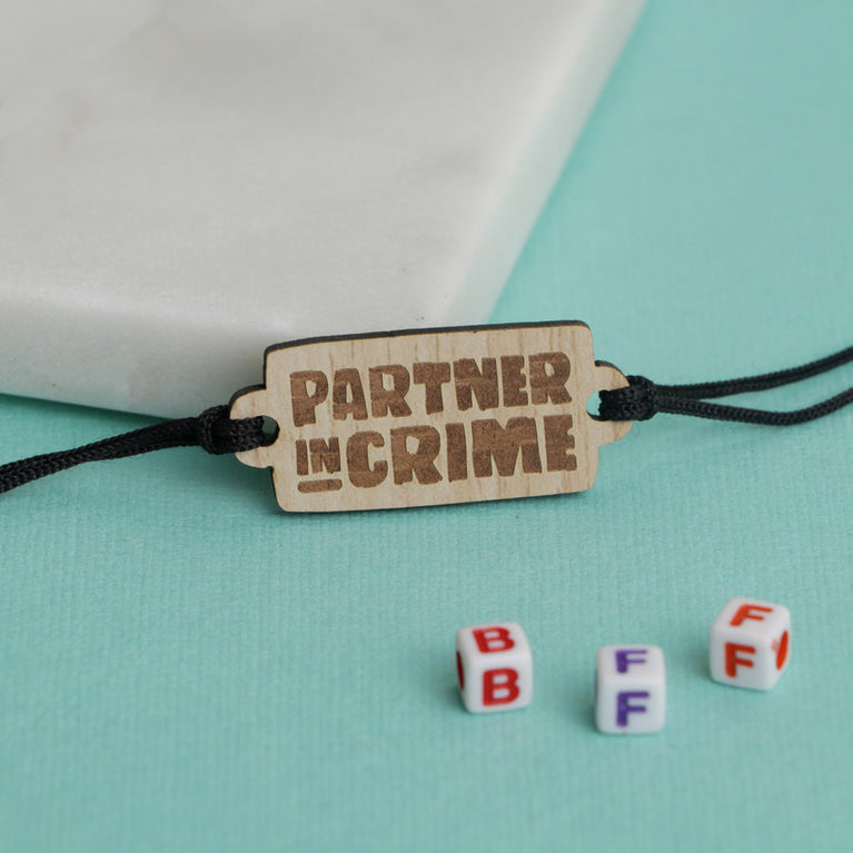 Ever wondered how to show your partner in crime just how much they mean to you? This Friendship Day, give them a gift that'll make them chuckle. Surprise your true partner-in-crime with a friendship day band designed especially for them. The band comes with a wooden centerpiece engraved with 'partner in crime'—perfect for your forever-there-for-you friend!Specifications:Size of the Wooden Centerpiece - 3.7 x 1.6 cmsContent on the Band - Partner in Crime