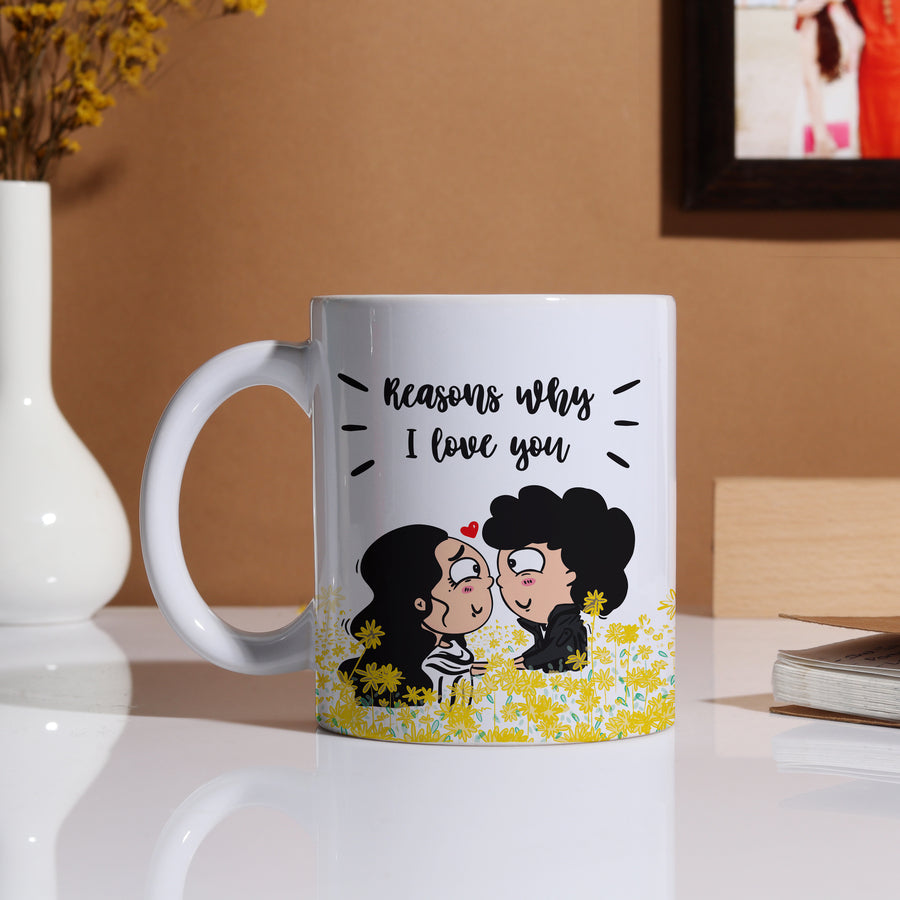 The Reason Why I Love You Mug – A ceramic mug with the sweetest illustrations and reasons that explain exactly why you love your partner. Perfect for morning coffee, evening chai, or midnight cocoa with a side of feelings.