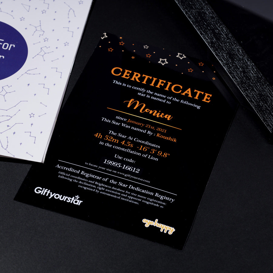 The star is beautifully customized with your partner’s name and a constellation chart highlighting its exact location in the night sky. Add a heartfelt Valentine message to turn this magical gift into an unforgettable symbol of your love.